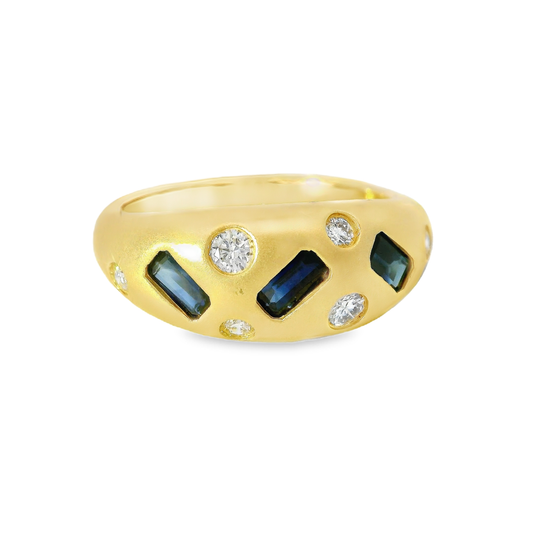 0.18CT Diamond and 1.10CT Blue Sapphire Ring 14K Yellow Gold