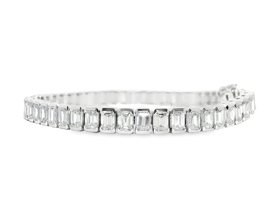 27.25CT Emerald Cut Lab Diamond Bracelet 14k White Gold