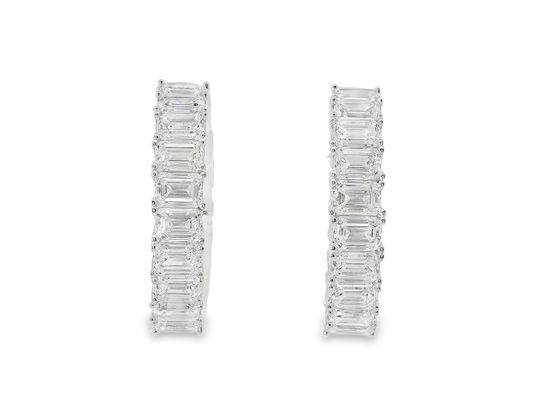 3.79CT Diamond Lab Emerald Cut Hoop Earring 14k White Gold