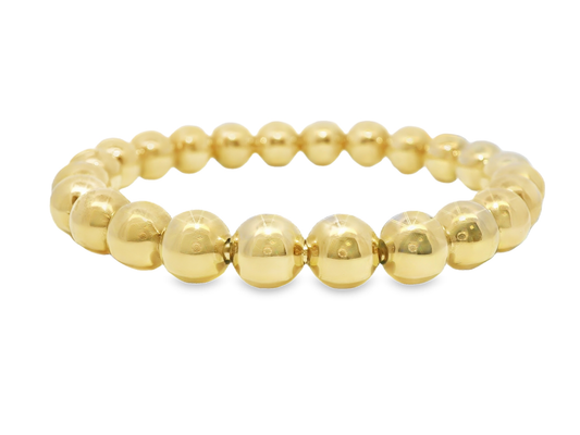 Plain Gold Beads Stretch Bangle 18k Yellow Gold