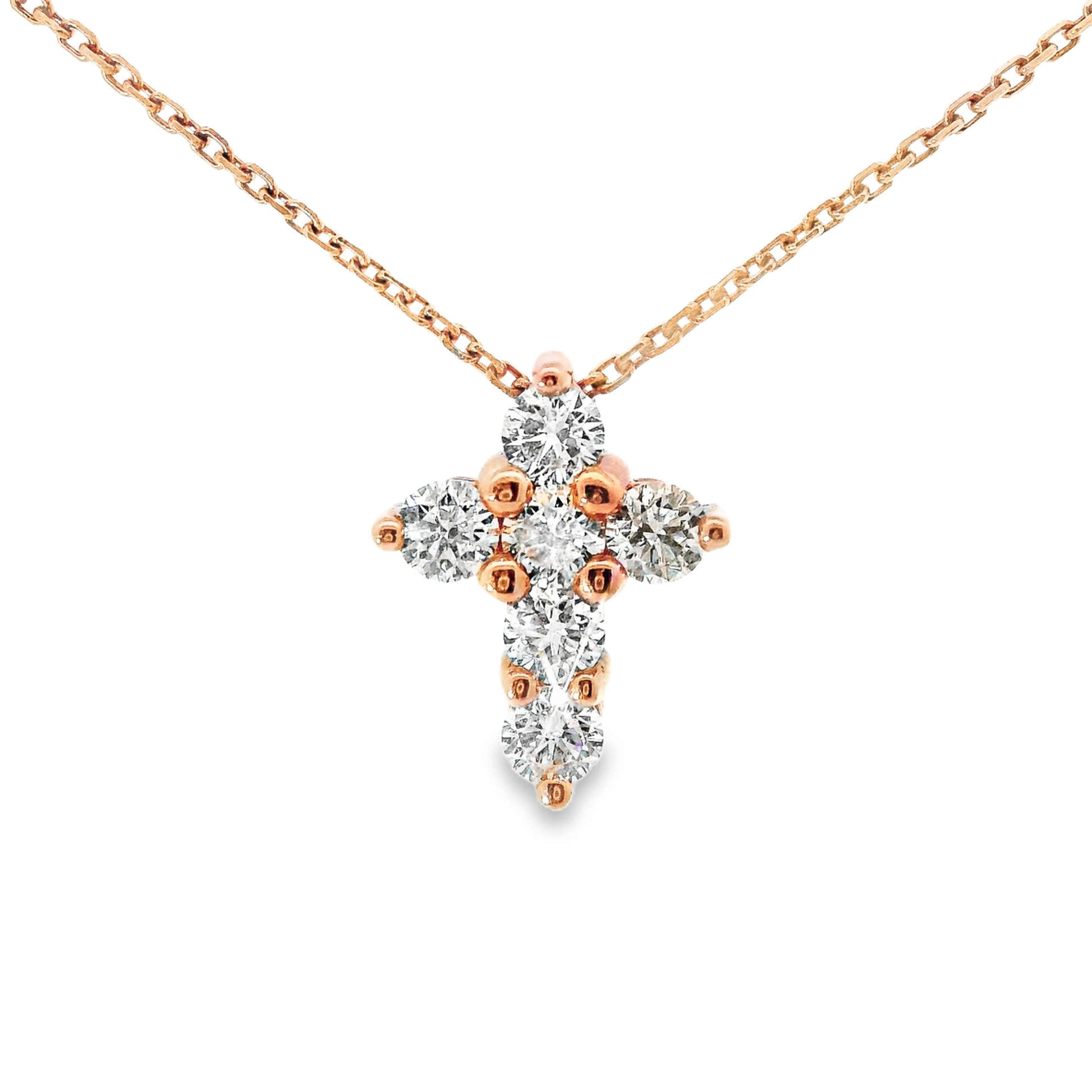 0.80CT Diamond Cross Pendant 14k Rose Gold