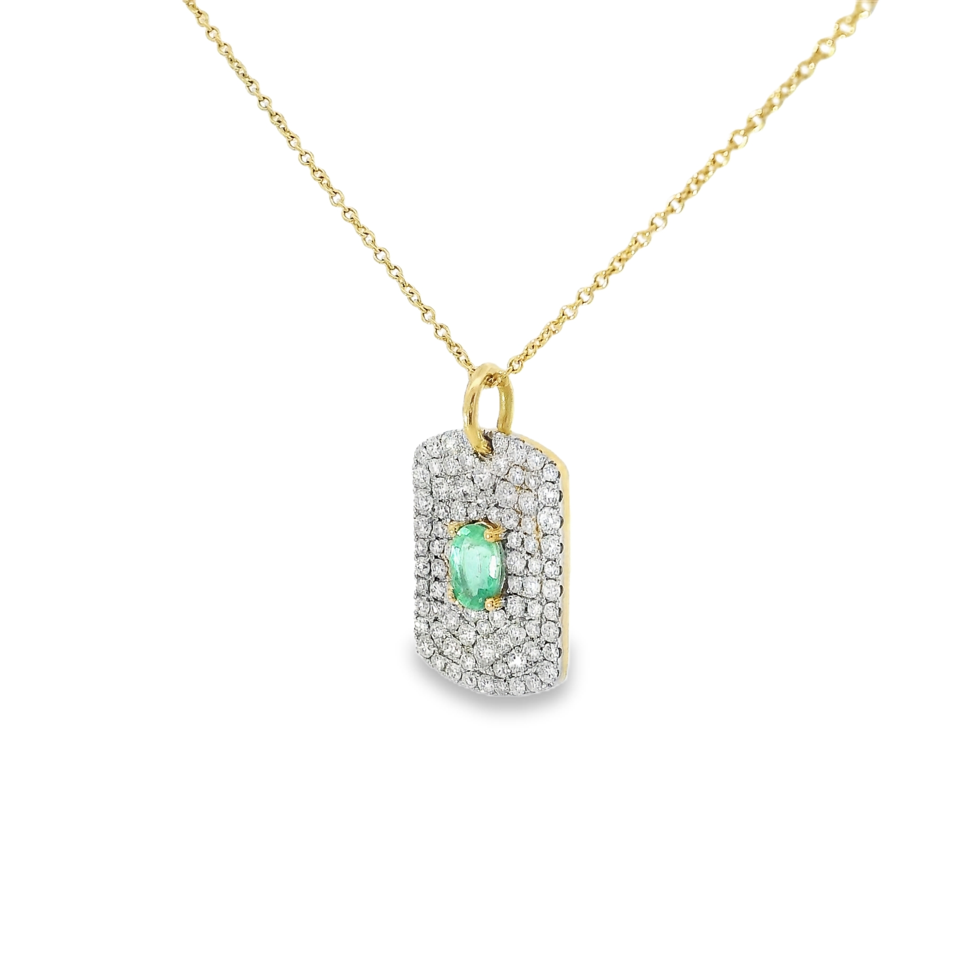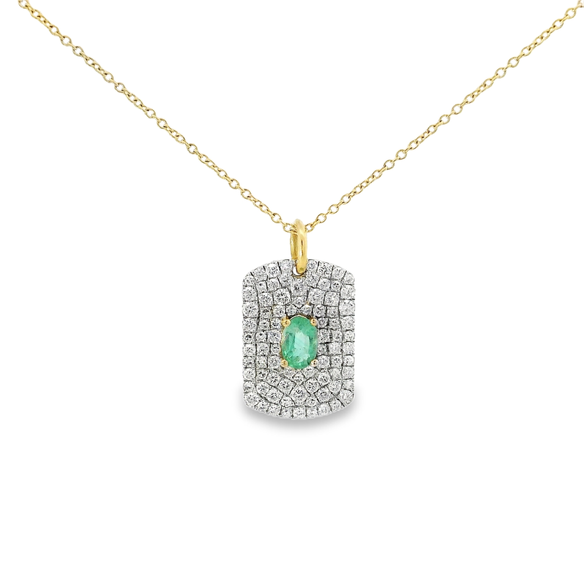 Exquisite elegance meets timeless beauty with this 0.94Ct Diamond and 0.40CT Emerald Pendant in 14k Yellow Gold. Crafted with precision, this pendant features a stunning 0.94 carat diamond and a 0.40 carat emerald, exuding a sense of sophistication and luxury. Elevate any outfit with this sparkling masterpiece.