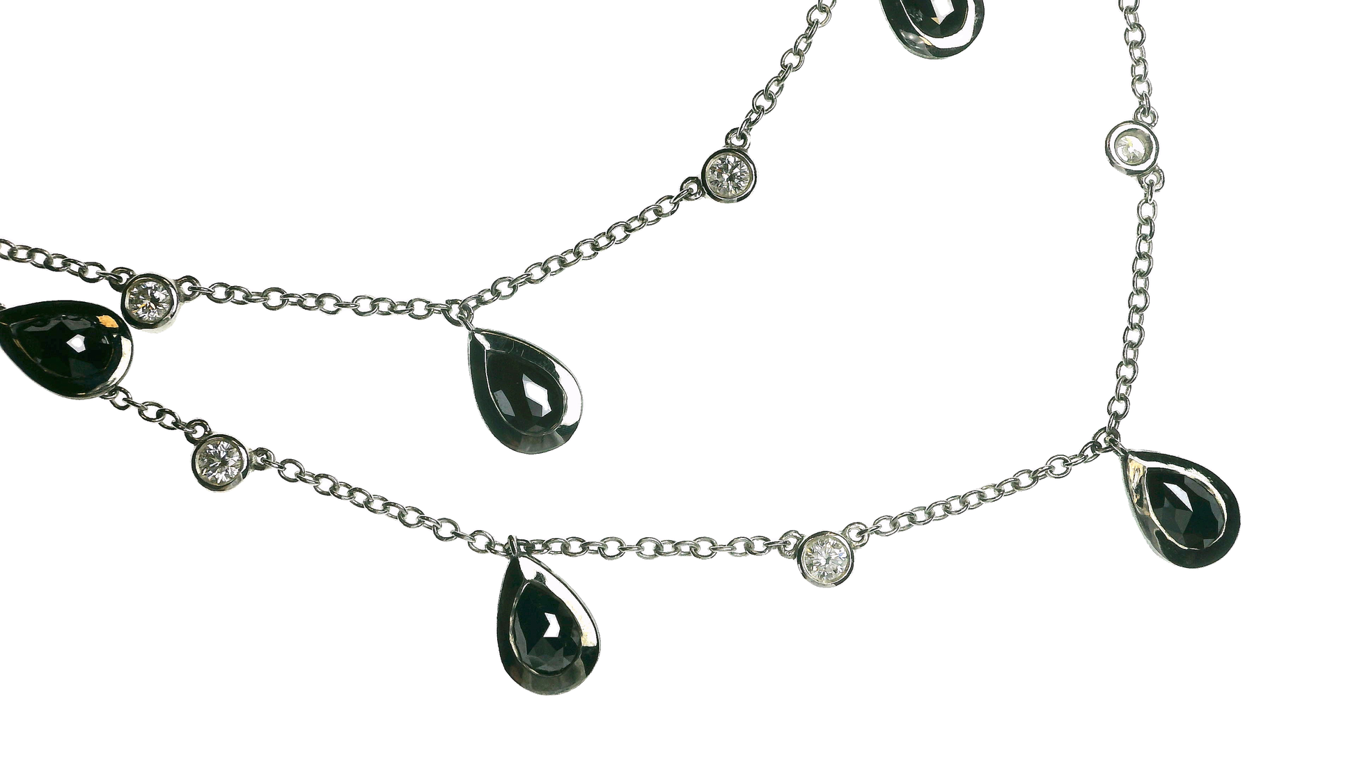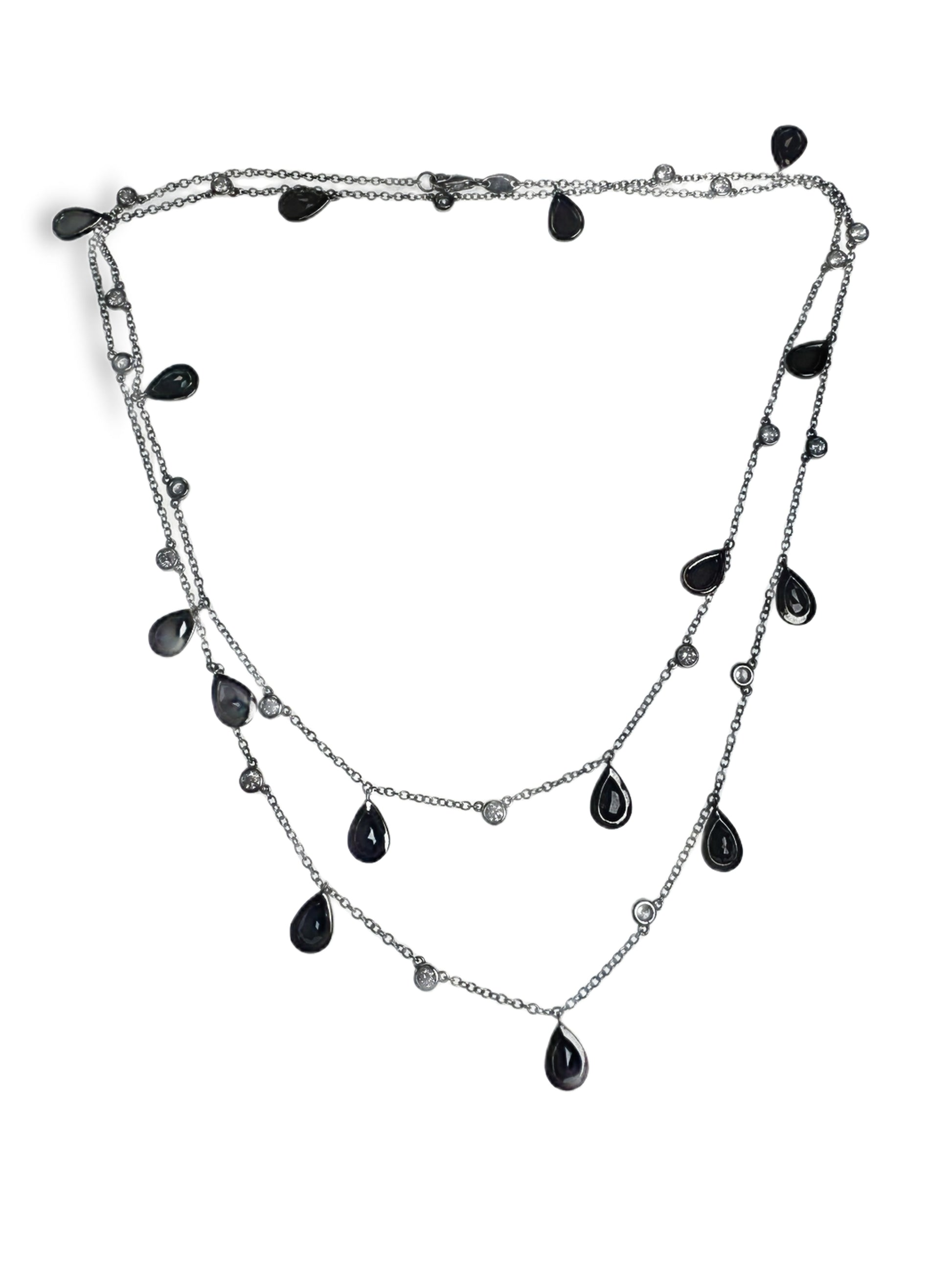 1.48CT Diamond 4.65CT Black Diamond Necklace 18k White Gold