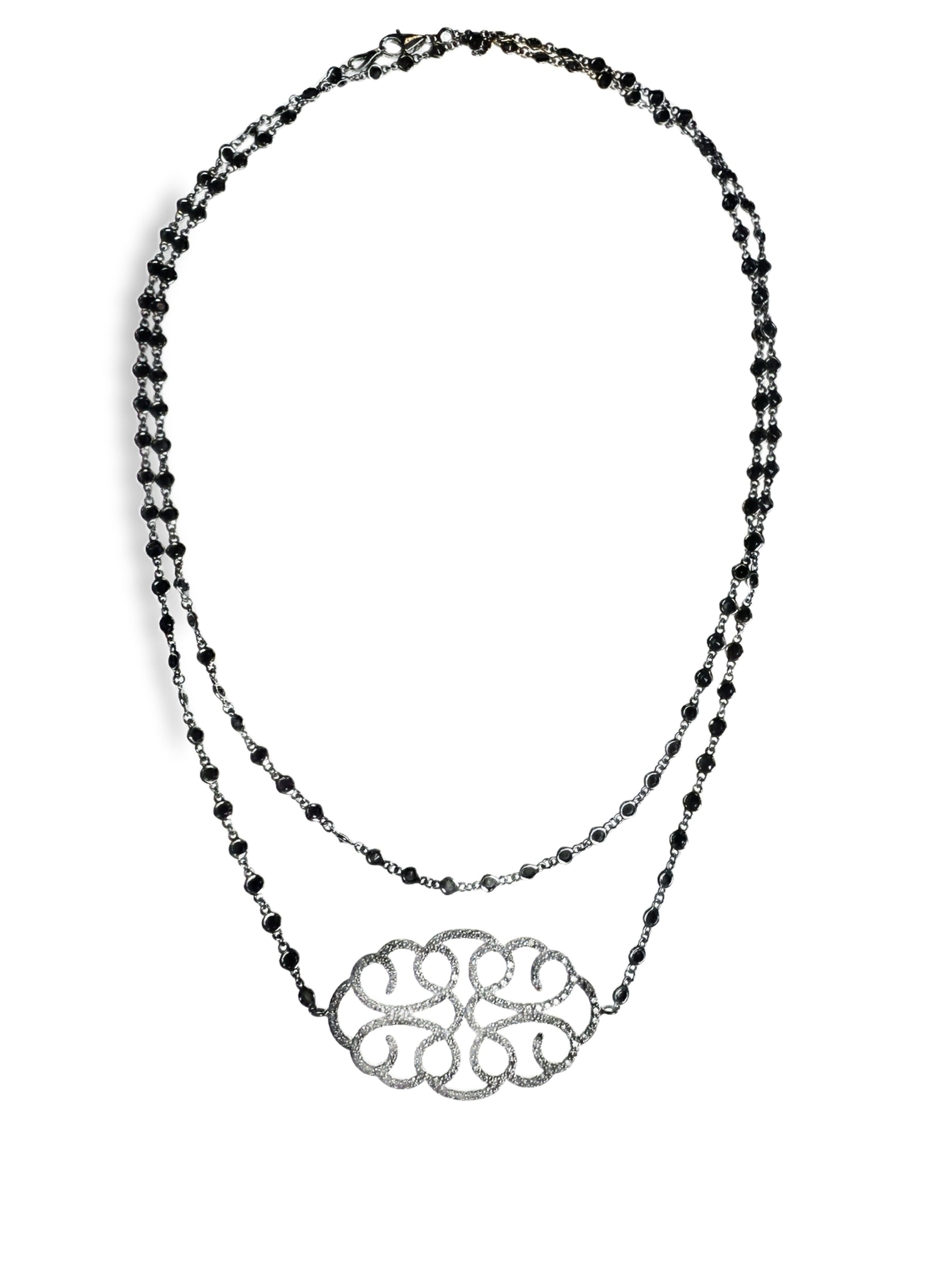 1.93CT Diamond 5.11CT Black Diamond Necklace 14k White Gold