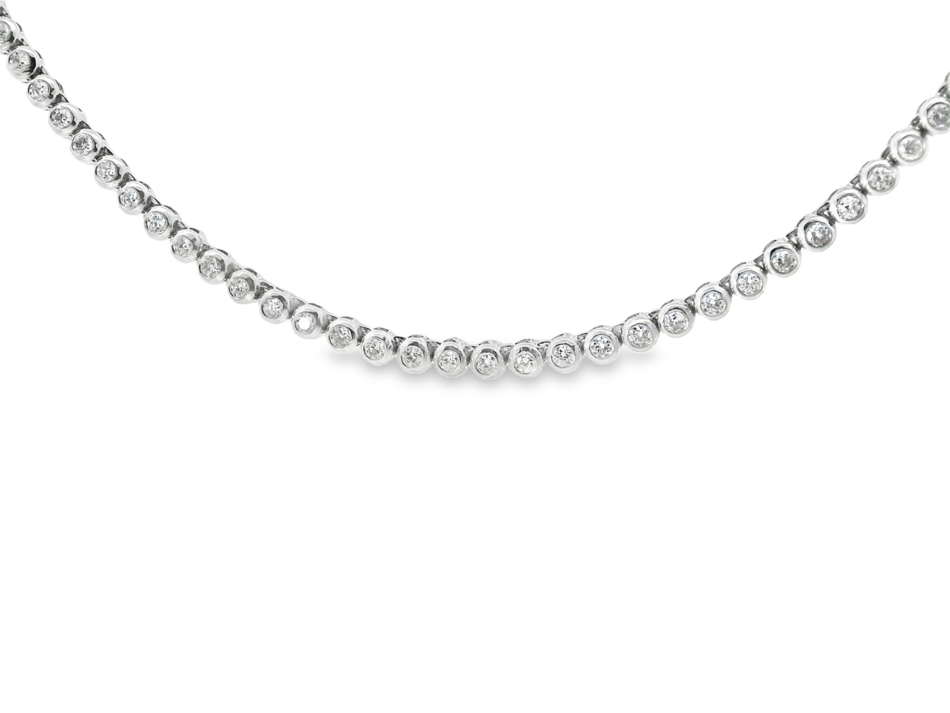 3.46CT Round Cut Dimaond Bezel Tennis Necklace 14K White Gold