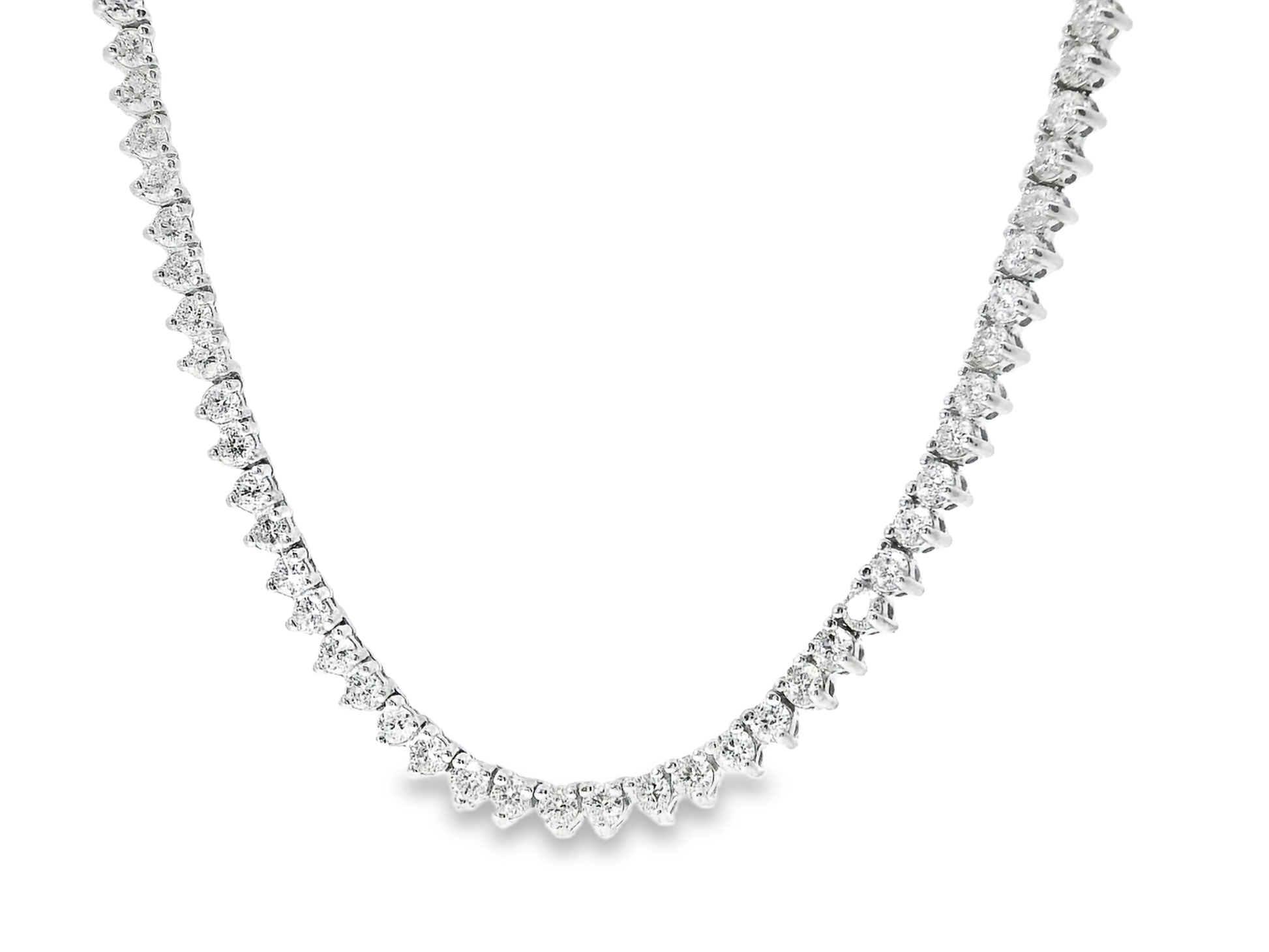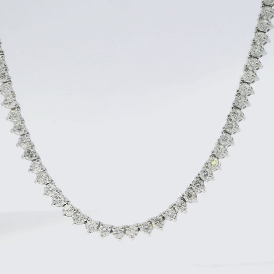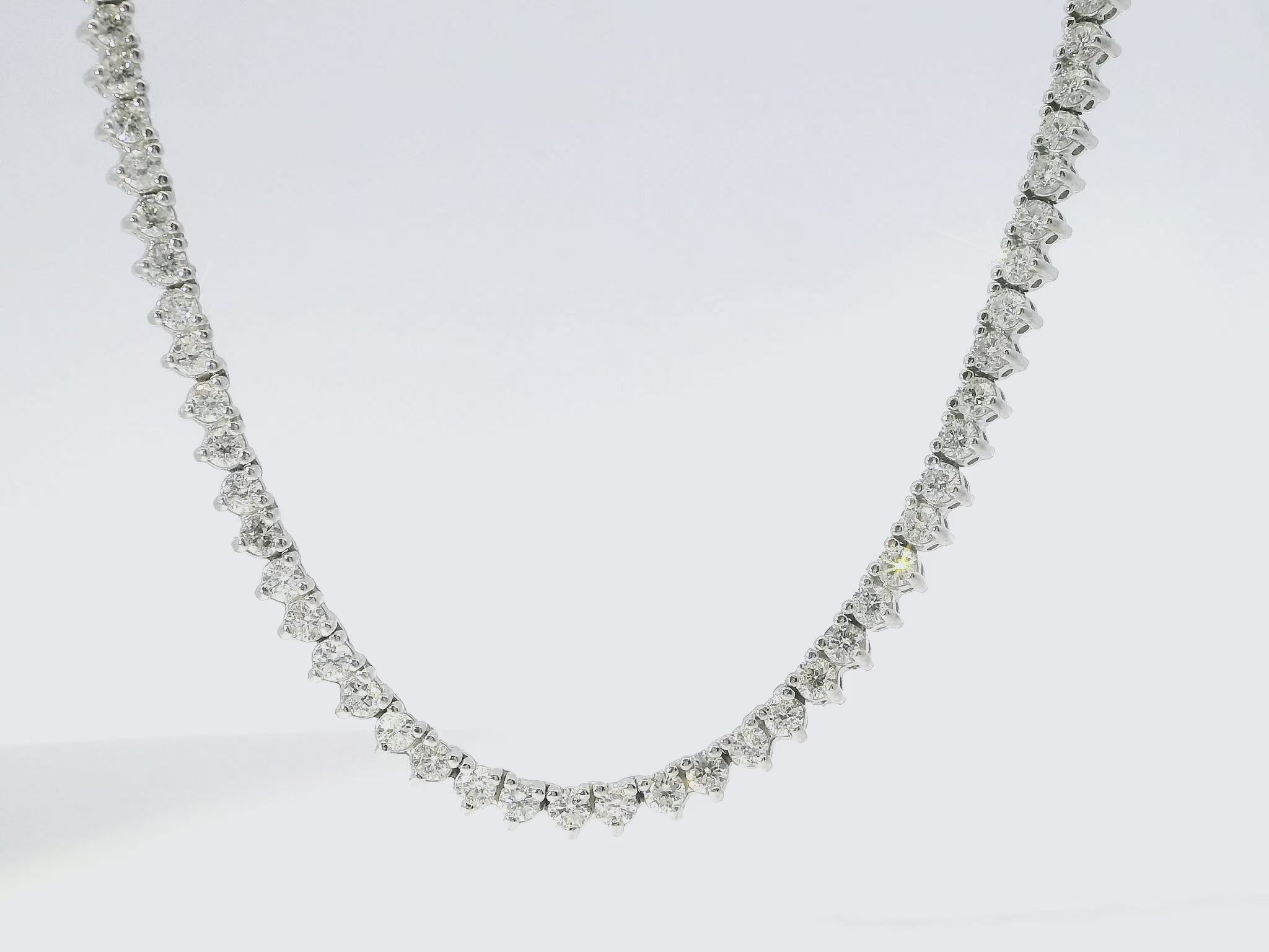 5.66CT Round Cut Diamond Three Prong Tennis Necklace 14K White Gold