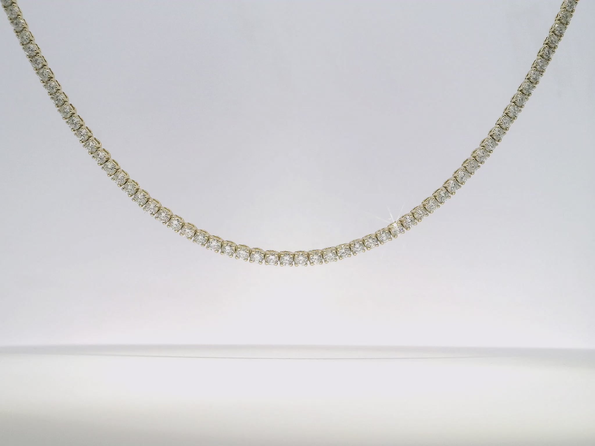 6.13CT Round Cut Diamond 4 Prong Tennis Necklace 14K Yellow Gold