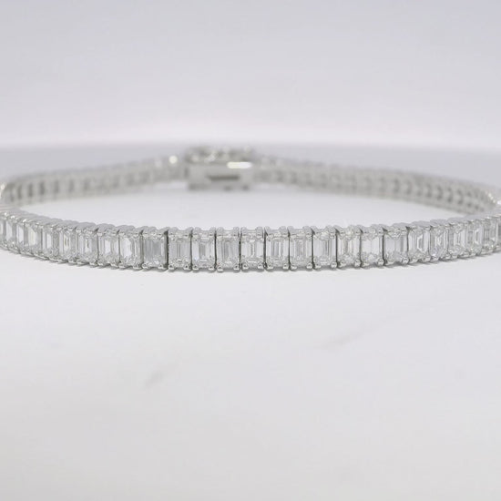 6.89CT Emerald Cut Lab Diamond Tennis Bracelet 14K White Gold