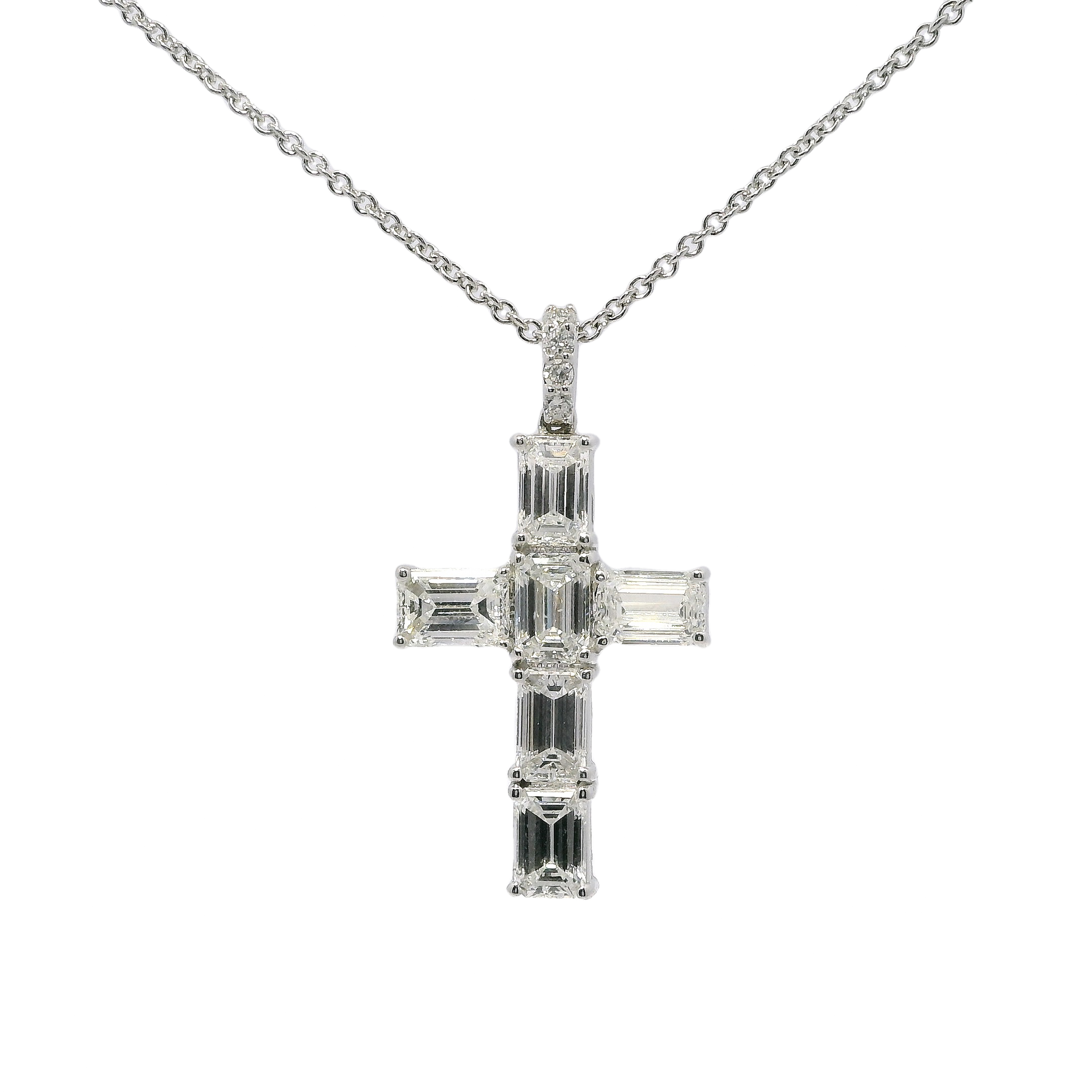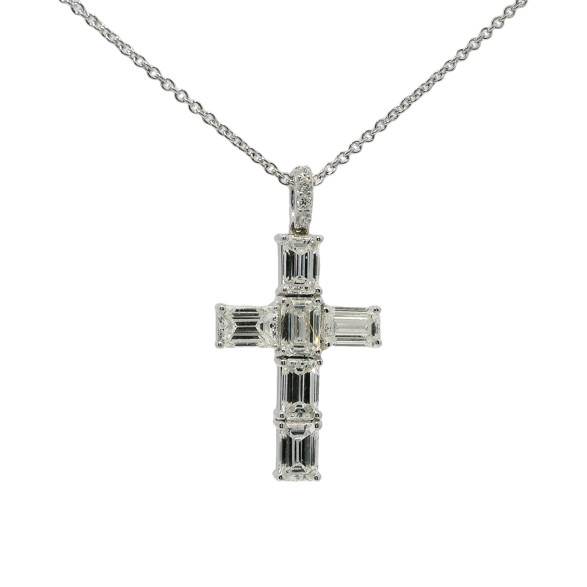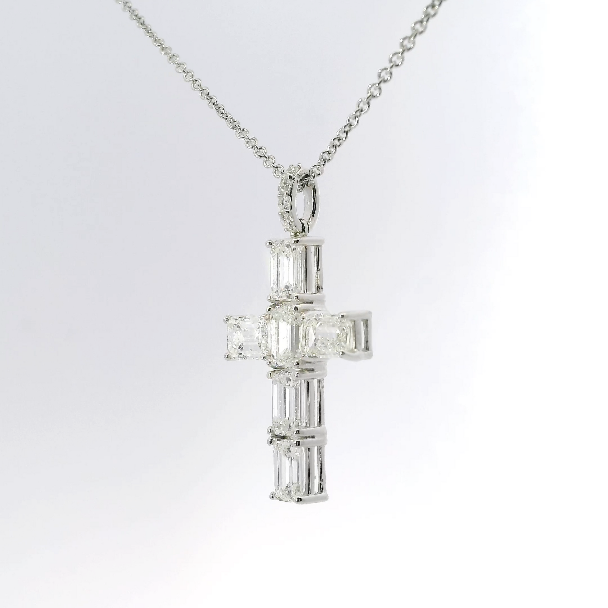 2.87CT Asscher Cut Diamond Cross Pendant 14k White Gold