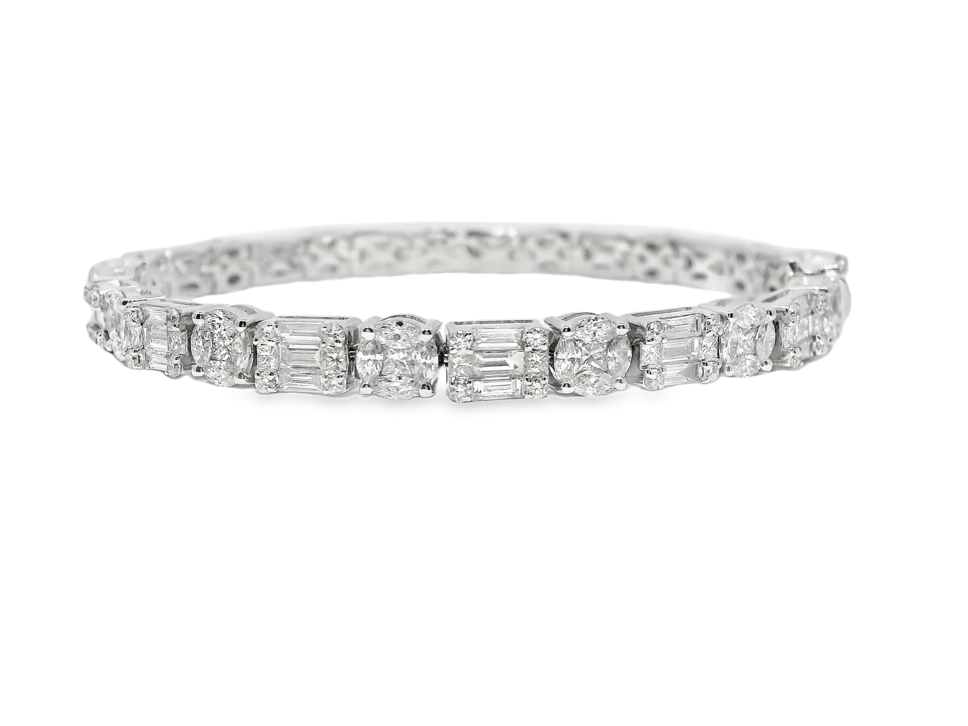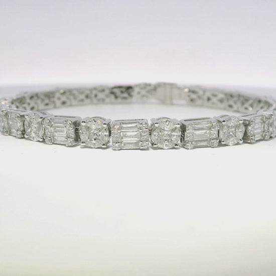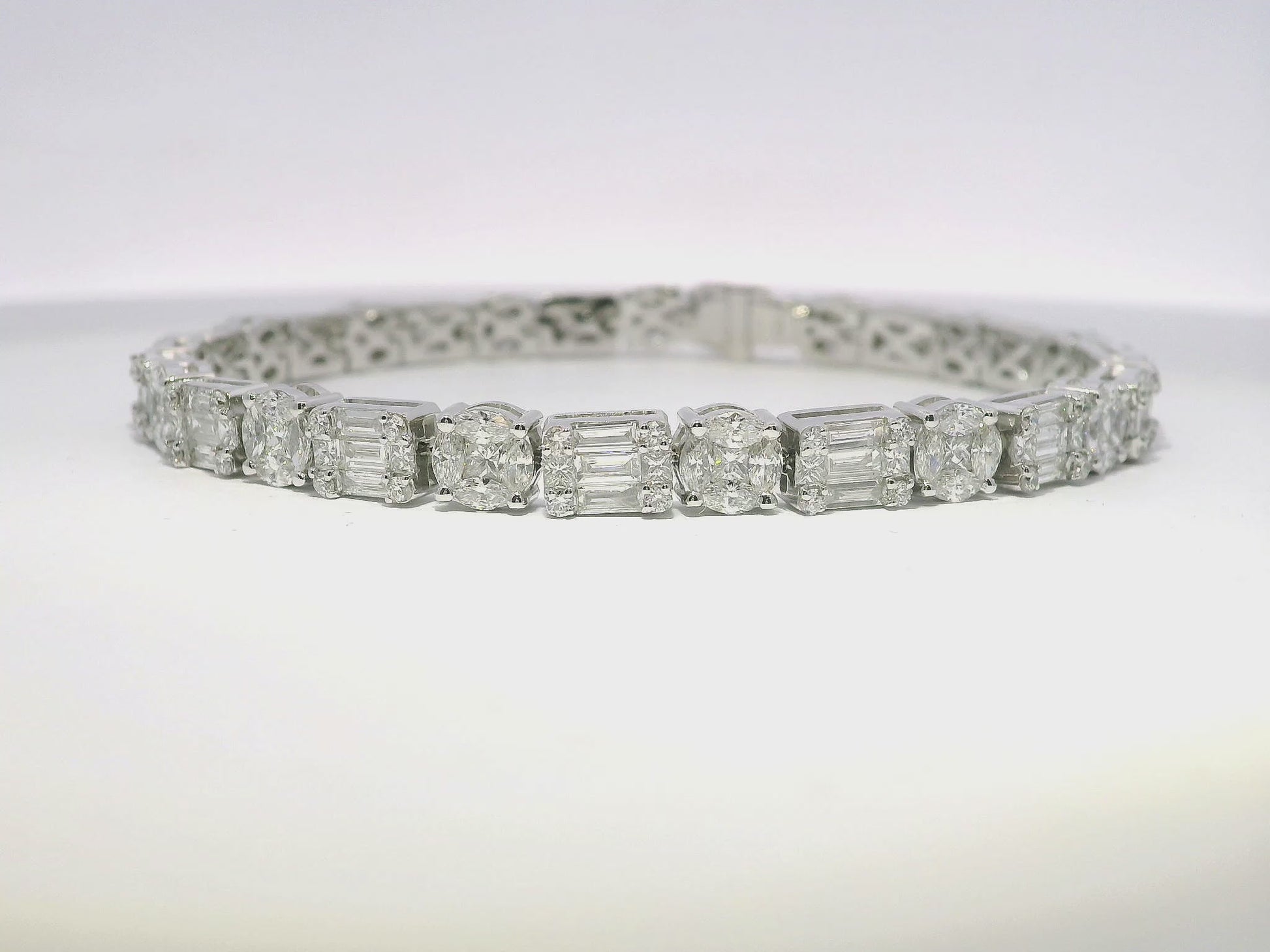 Elevate your collection with this exquisite 6.74CT bracelet crafted in premium 18k white gold. Featuring a stunning combination of brilliant round diamonds and sophisticated emerald cuts, this piece offers exceptional clarity and fire. The secure setting and refined craftsmanship ensure both durability and timeless elegance, making it a significant investment piece for connoisseurs of fine jewelry.