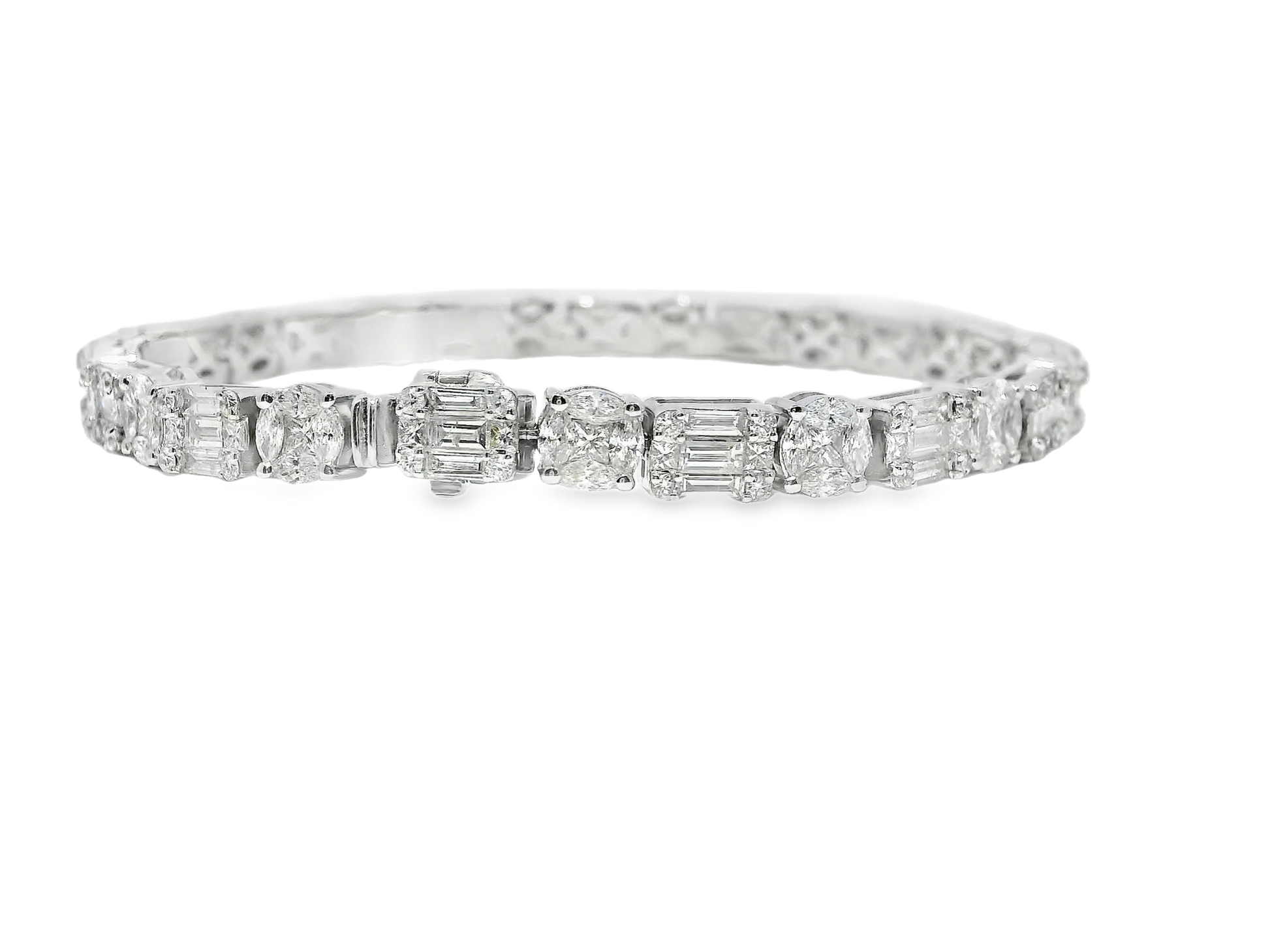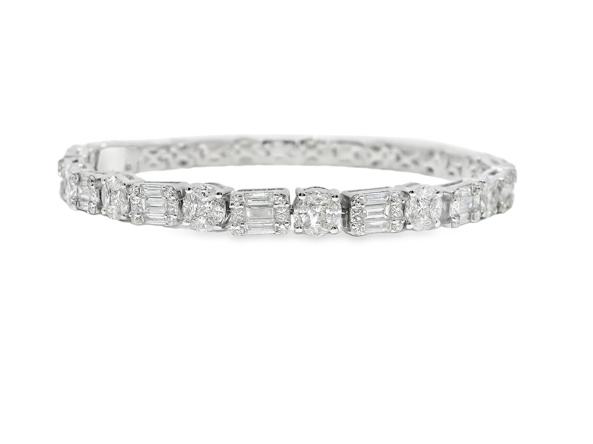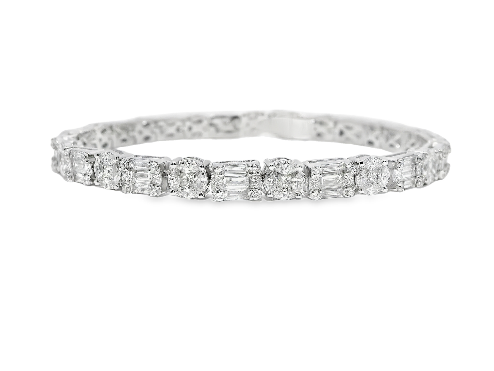 Elevate your collection with this exquisite 6.74CT bracelet crafted in premium 18k white gold. Featuring a stunning combination of brilliant round diamonds and sophisticated emerald cuts, this piece offers exceptional clarity and fire. The secure setting and refined craftsmanship ensure both durability and timeless elegance, making it a significant investment piece for connoisseurs of fine jewelry.