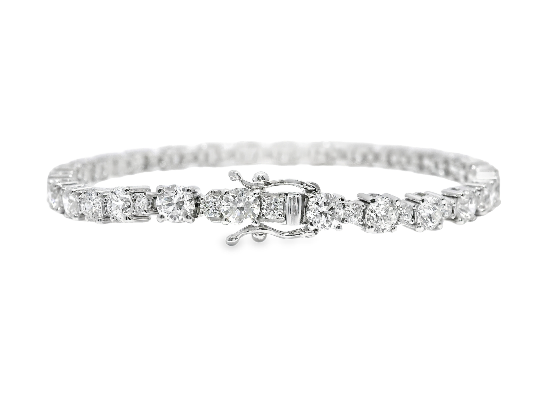 Exquisitely crafted, this 7.79-carat diamond bracelet set in 14k white gold delivers exceptional brilliance and timeless elegance. The substantial diamond weight ensures a captivating sparkle from every angle, while the durable white gold setting offers lasting strength and a refined finish. Perfect for those seeking a luxurious accessory that combines expert craftsmanship with enduring beauty.