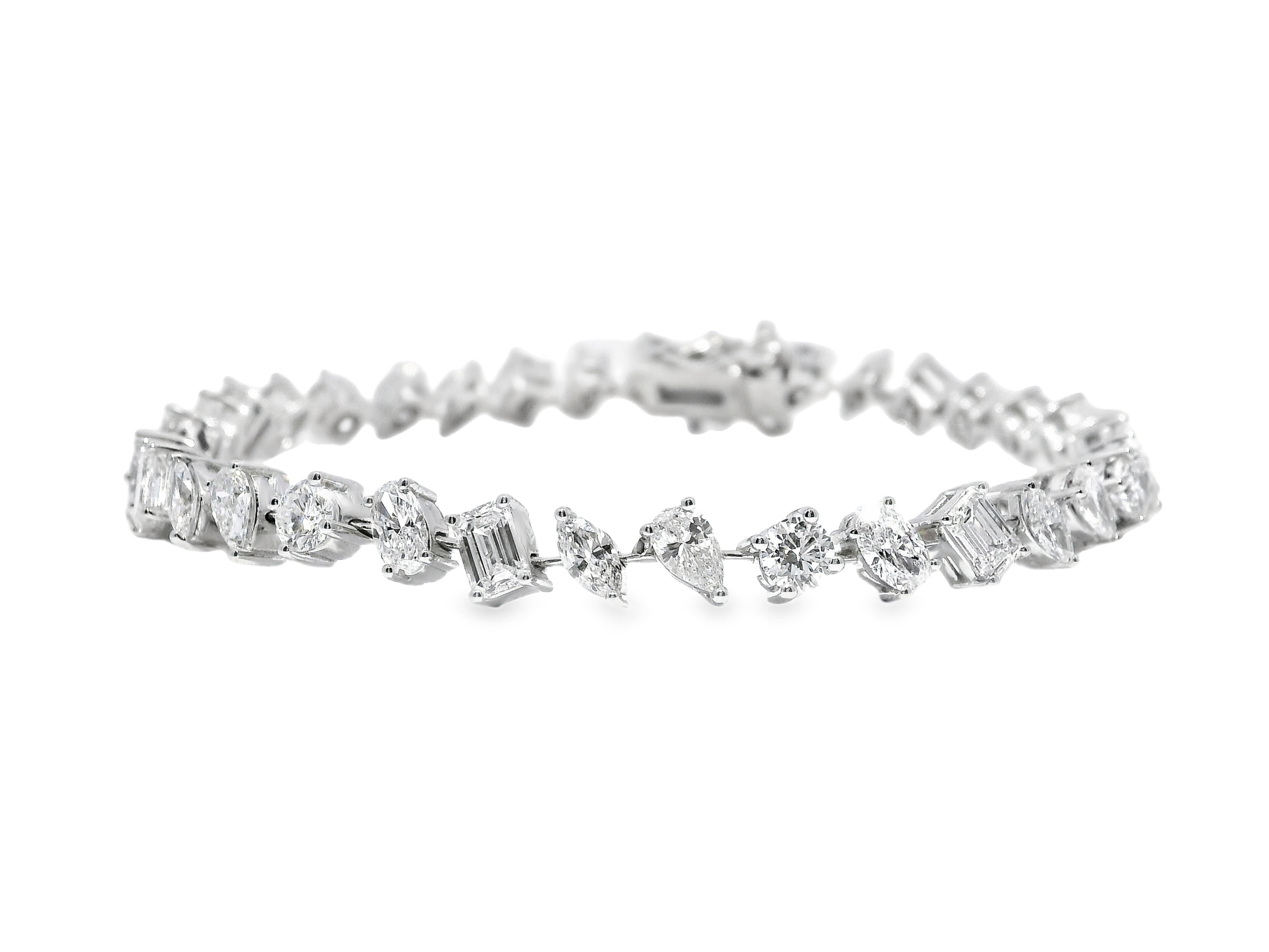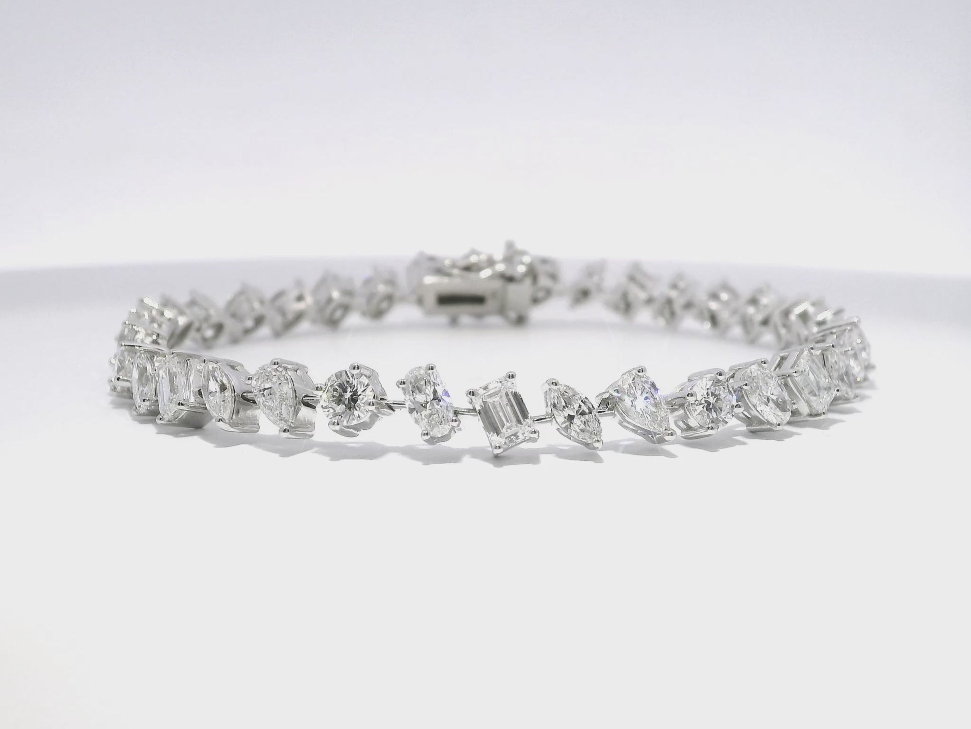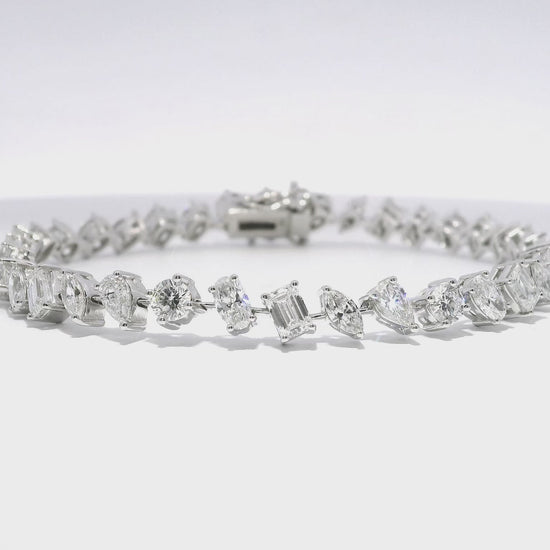 Discover the ultimate elegance and luxury with this stunning 1.37CT Round 5.42CT Mixed Shape Lab Diamond Bracelet in shimmering 14k White Gold. The perfect accessory to add a touch of sophistication to any outfit. Expertly crafted with a mix of brilliant round and unique mixed shape lab diamonds for a dazzling and one-of-a-kind look.