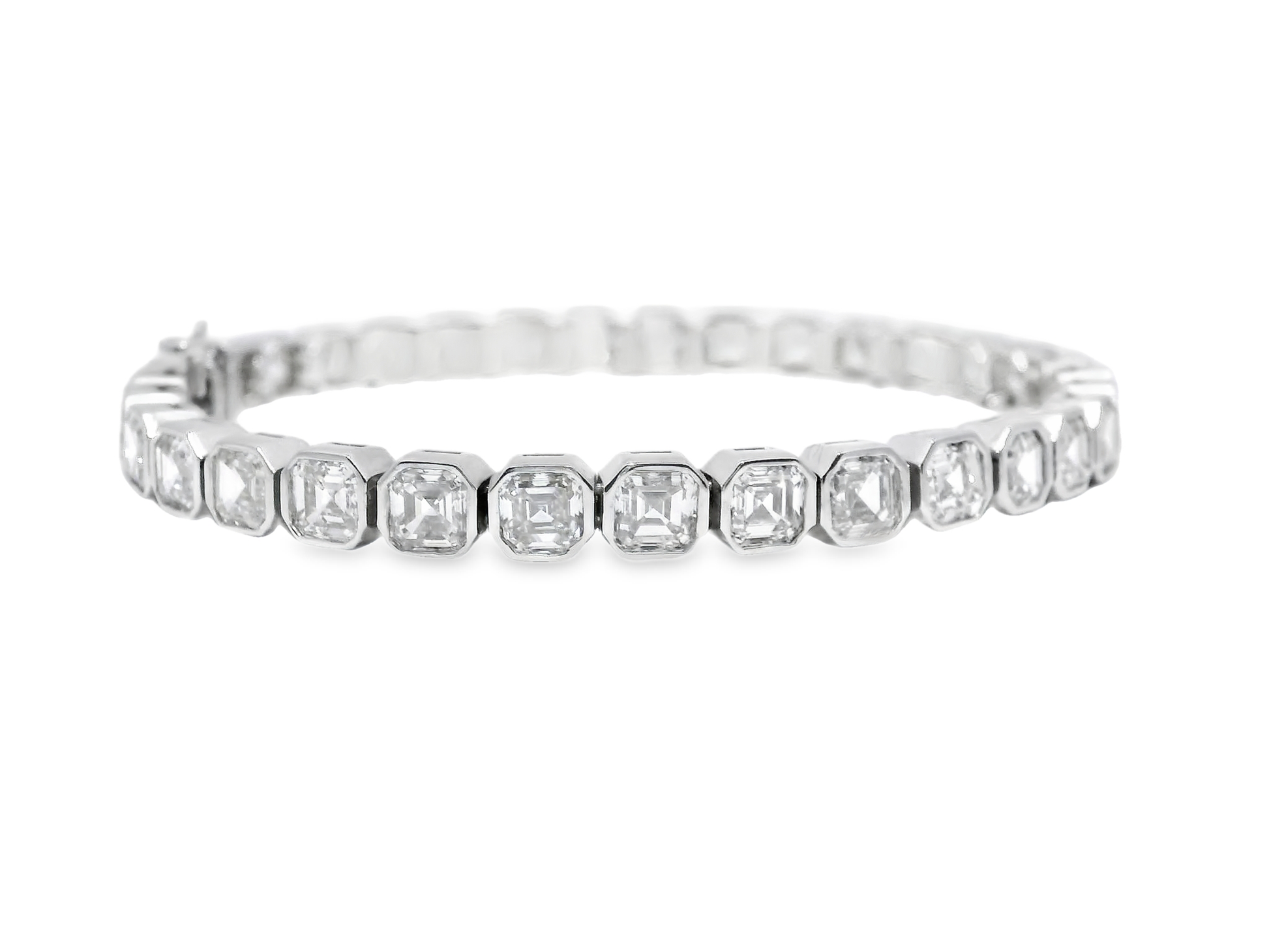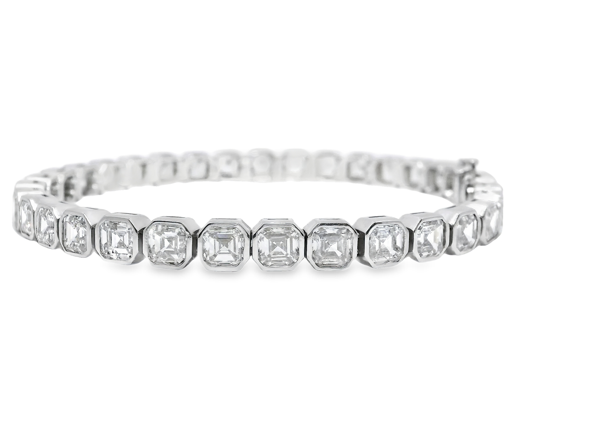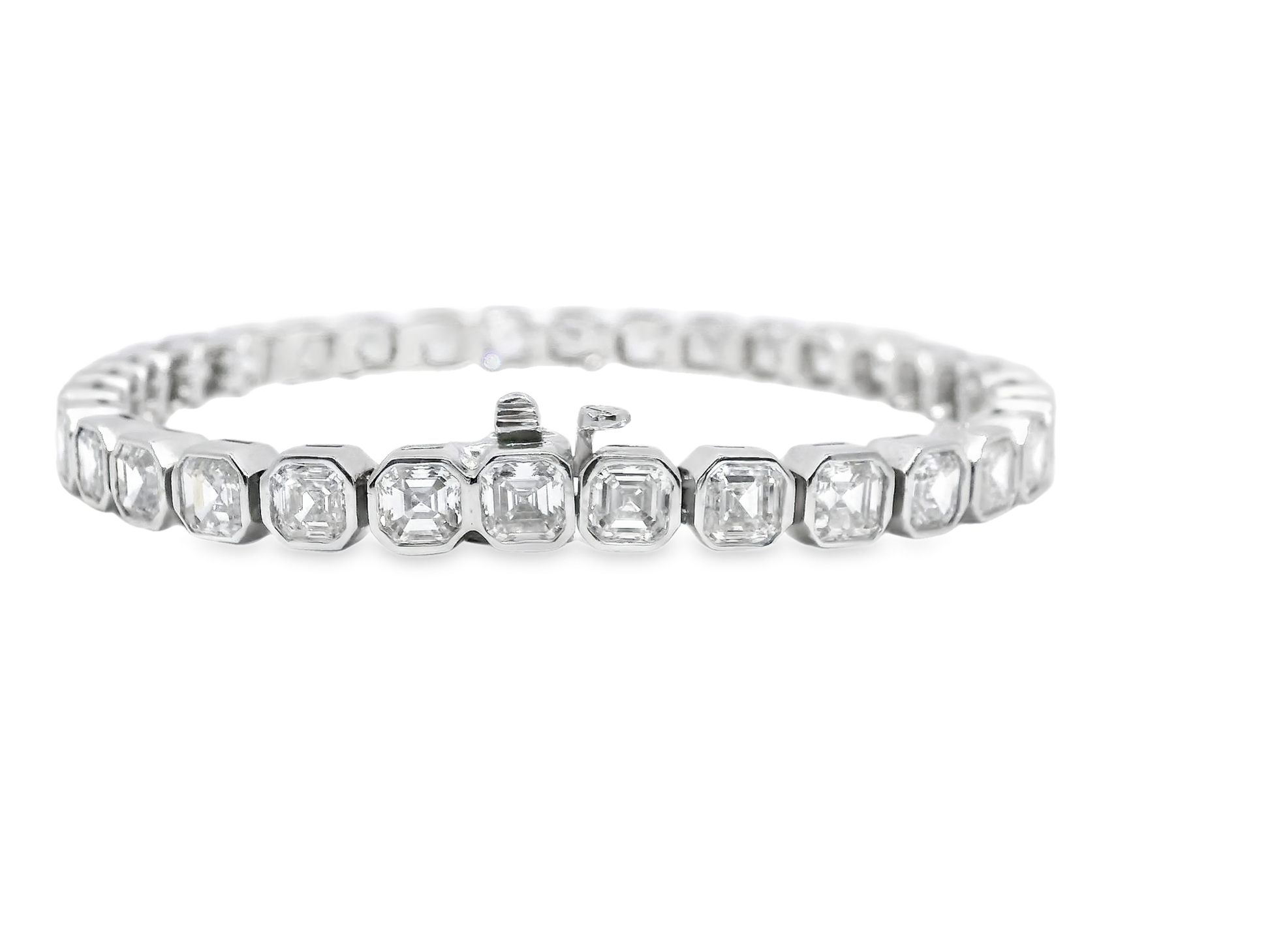 Expertly crafted with 14k white gold and featuring stunning 13.93CT lab diamonds, this bracelet exudes elegance and luxury. Perfect for adding a touch of sophistication to any outfit, it's a timeless piece that will elevate your style. Trust in our superior quality and impeccable craftsmanship for a truly exceptional piece of jewelry.