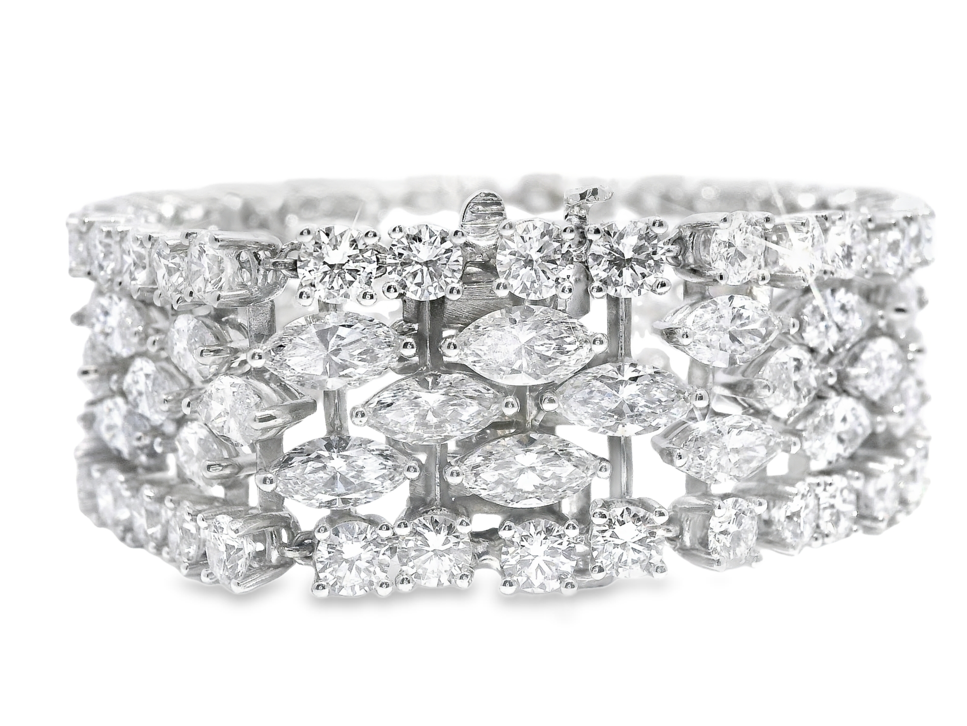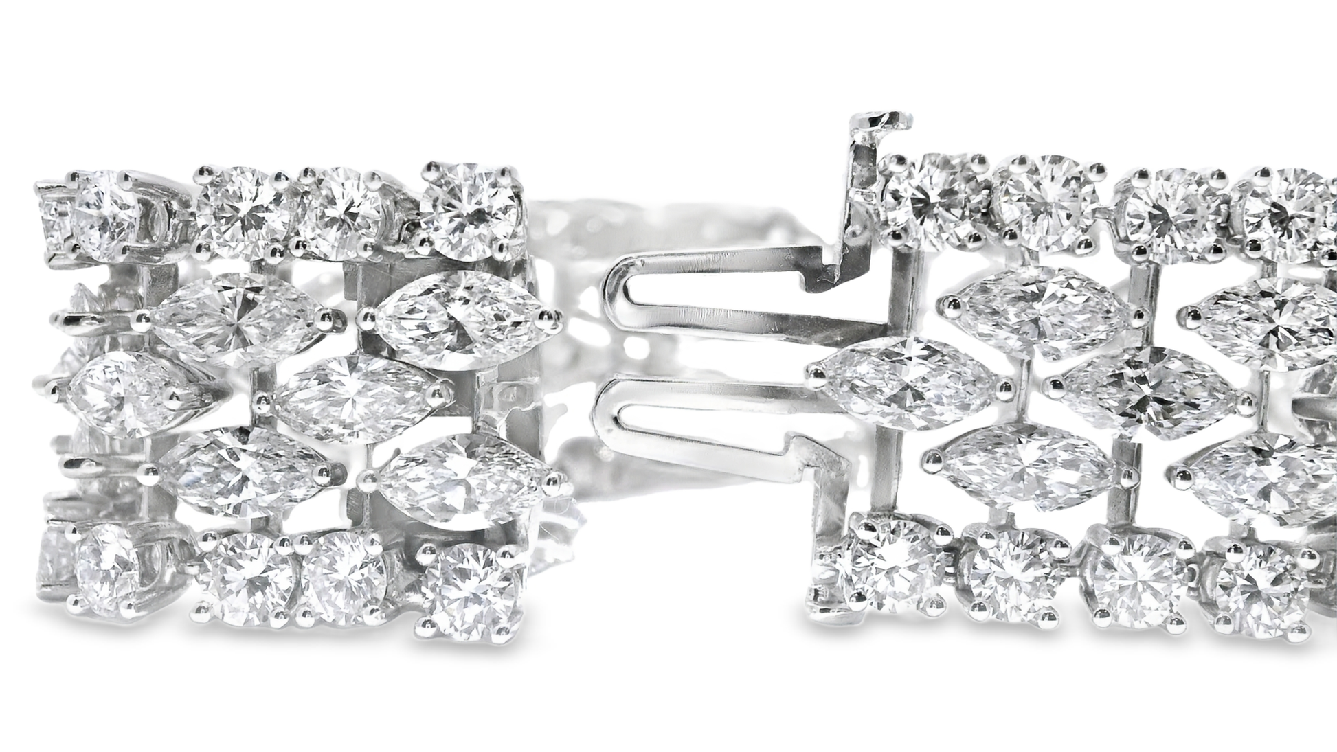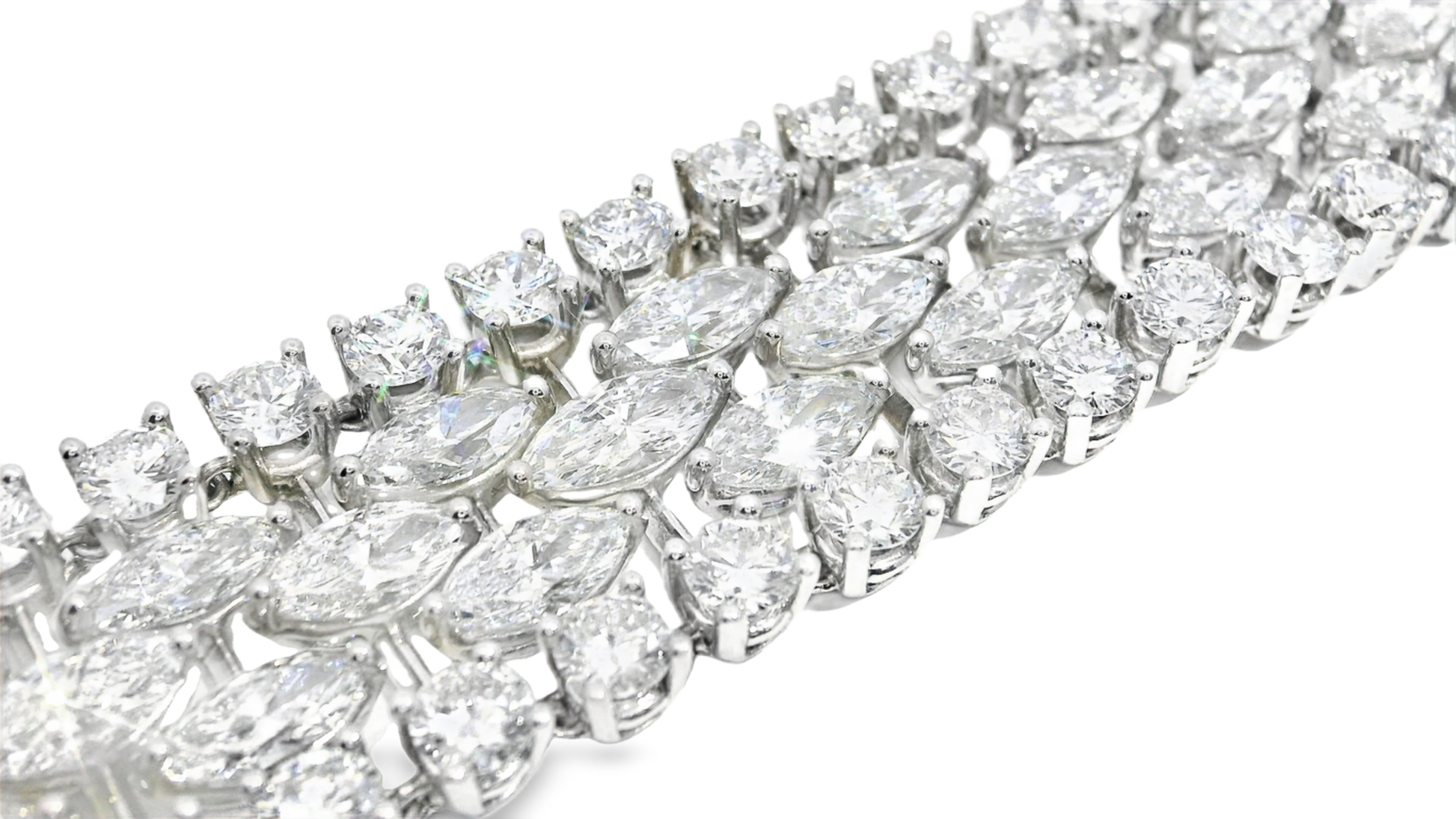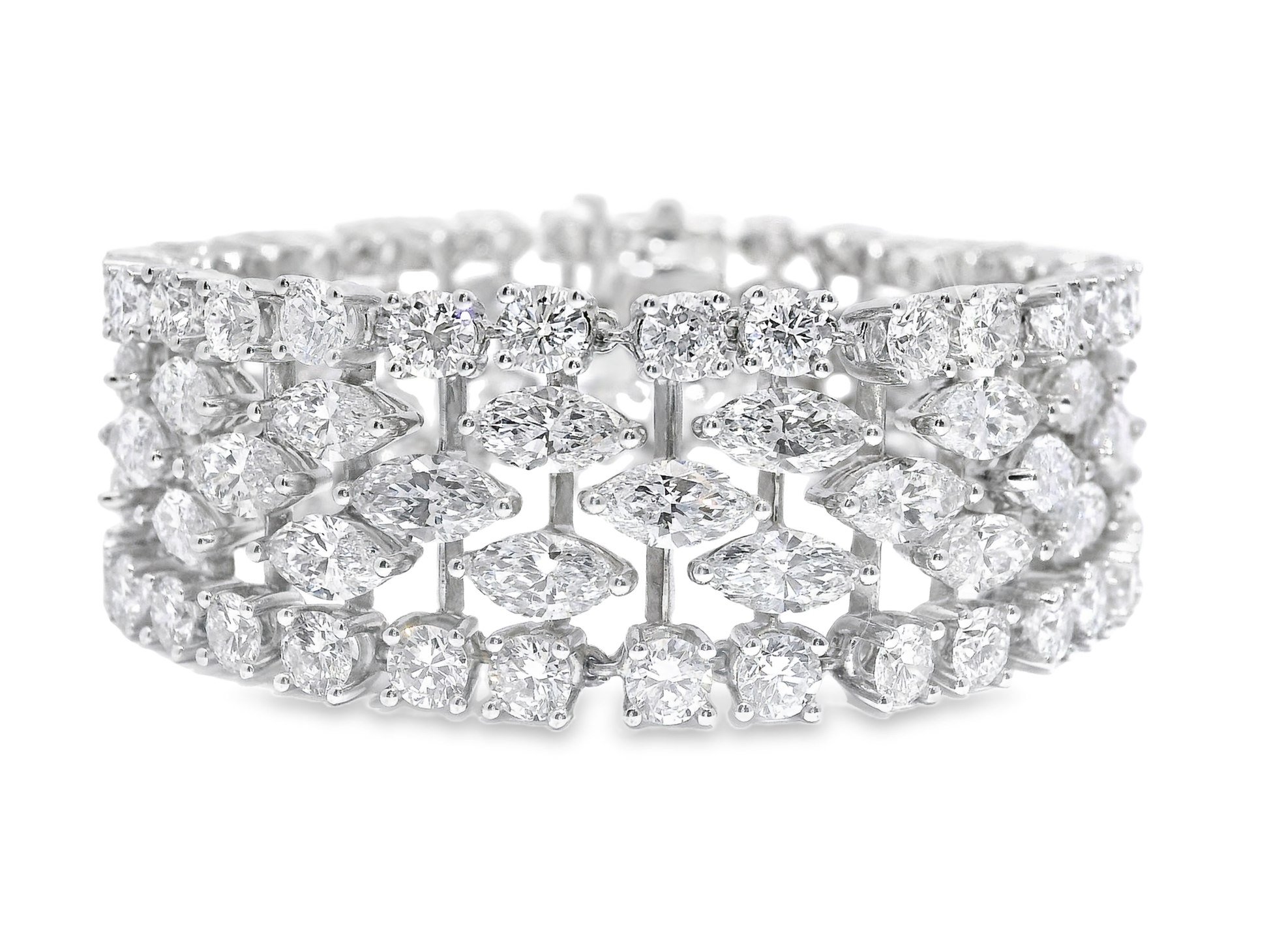Expertly crafted with 17.14CT round and 24.39CT marquise lab diamonds, this 14k white gold bracelet exudes timeless elegance and luxury. The perfect accessory for any occasion, this bracelet is a stunning addition to any jewelry collection.