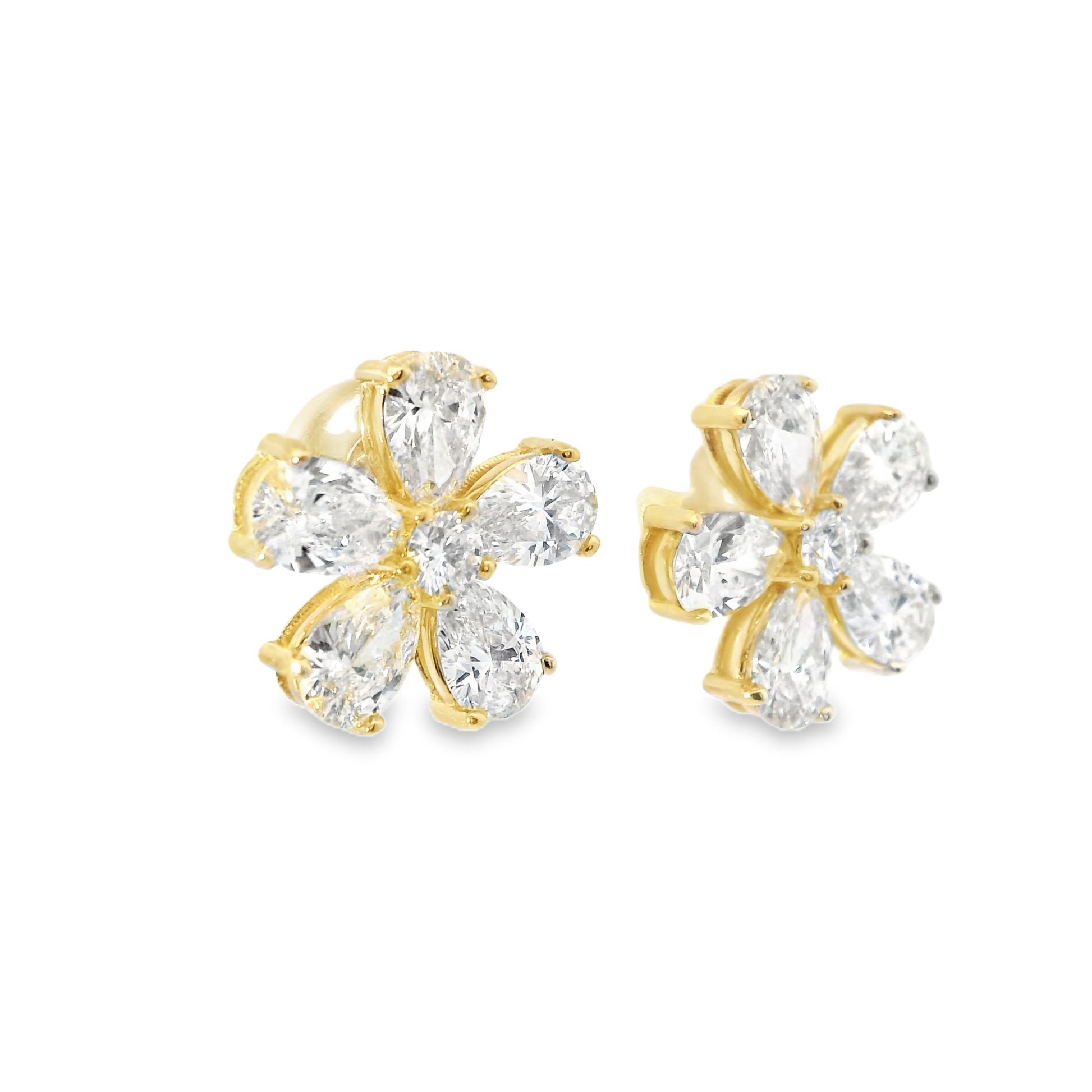These exquisite earrings feature a 0.21CT round lab diamond paired with a 3.38CT pear lab diamond, set in elegant 14k yellow gold. Expertly crafted for a sophisticated and timeless look. Elevate any outfit with these stunning and ethically sourced diamond earrings.