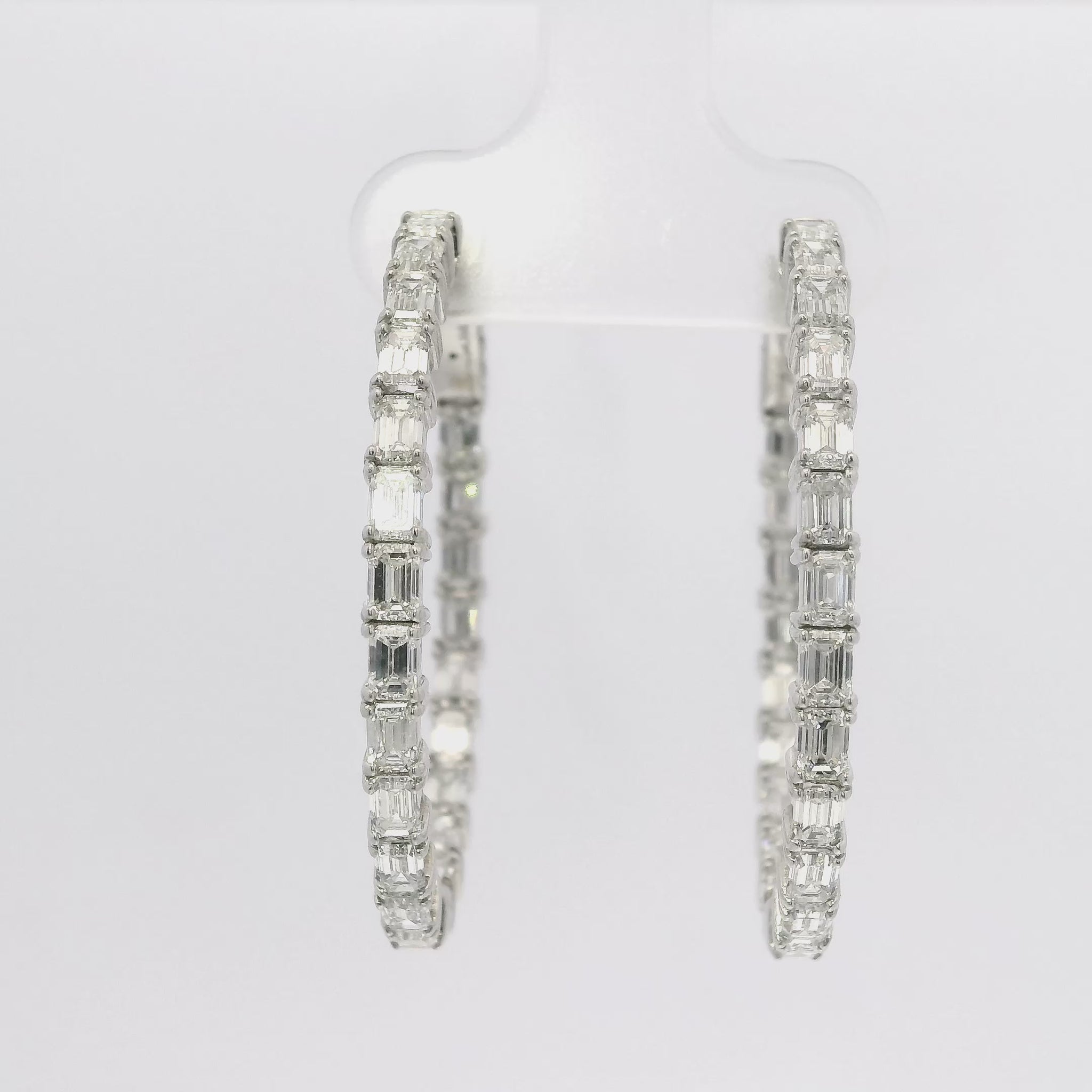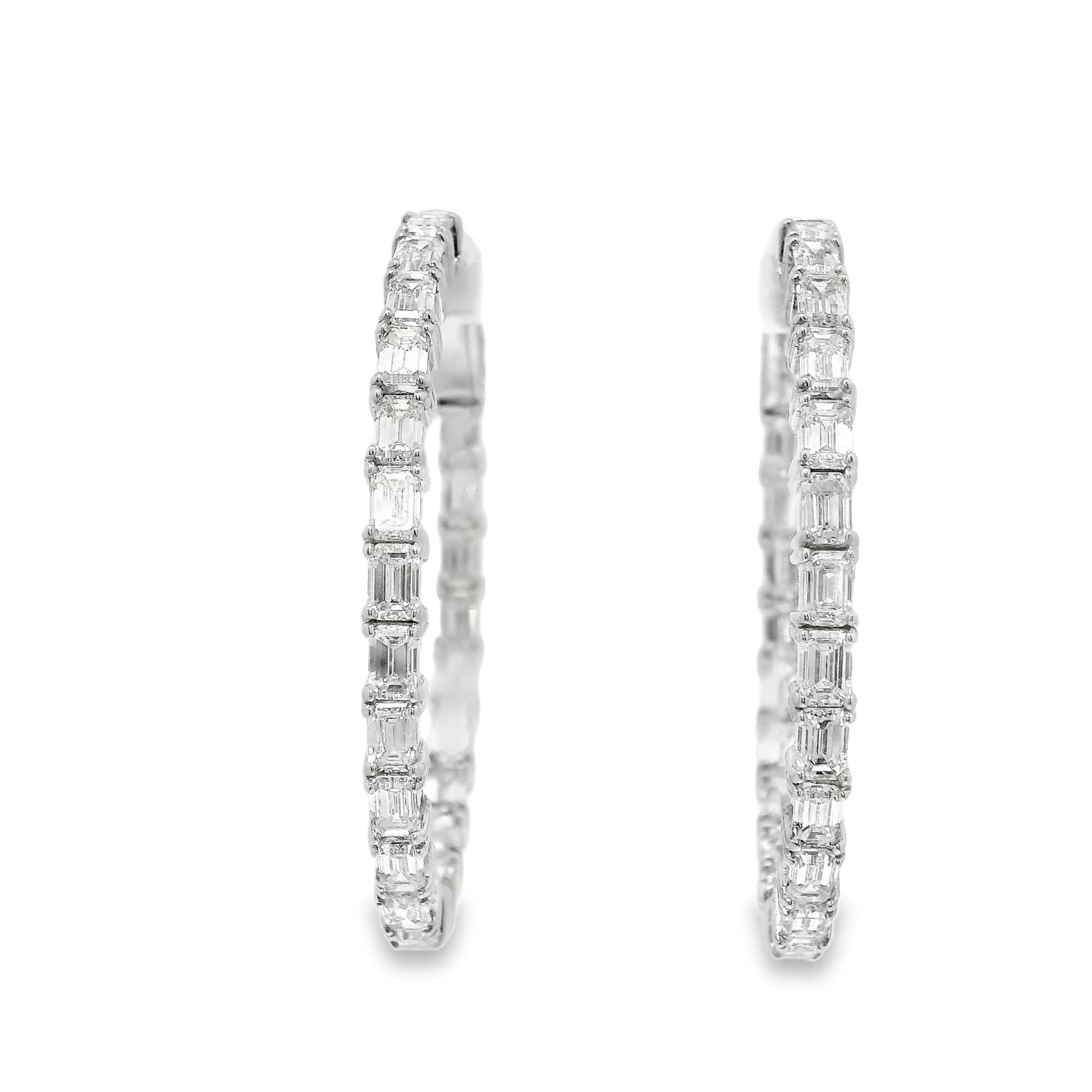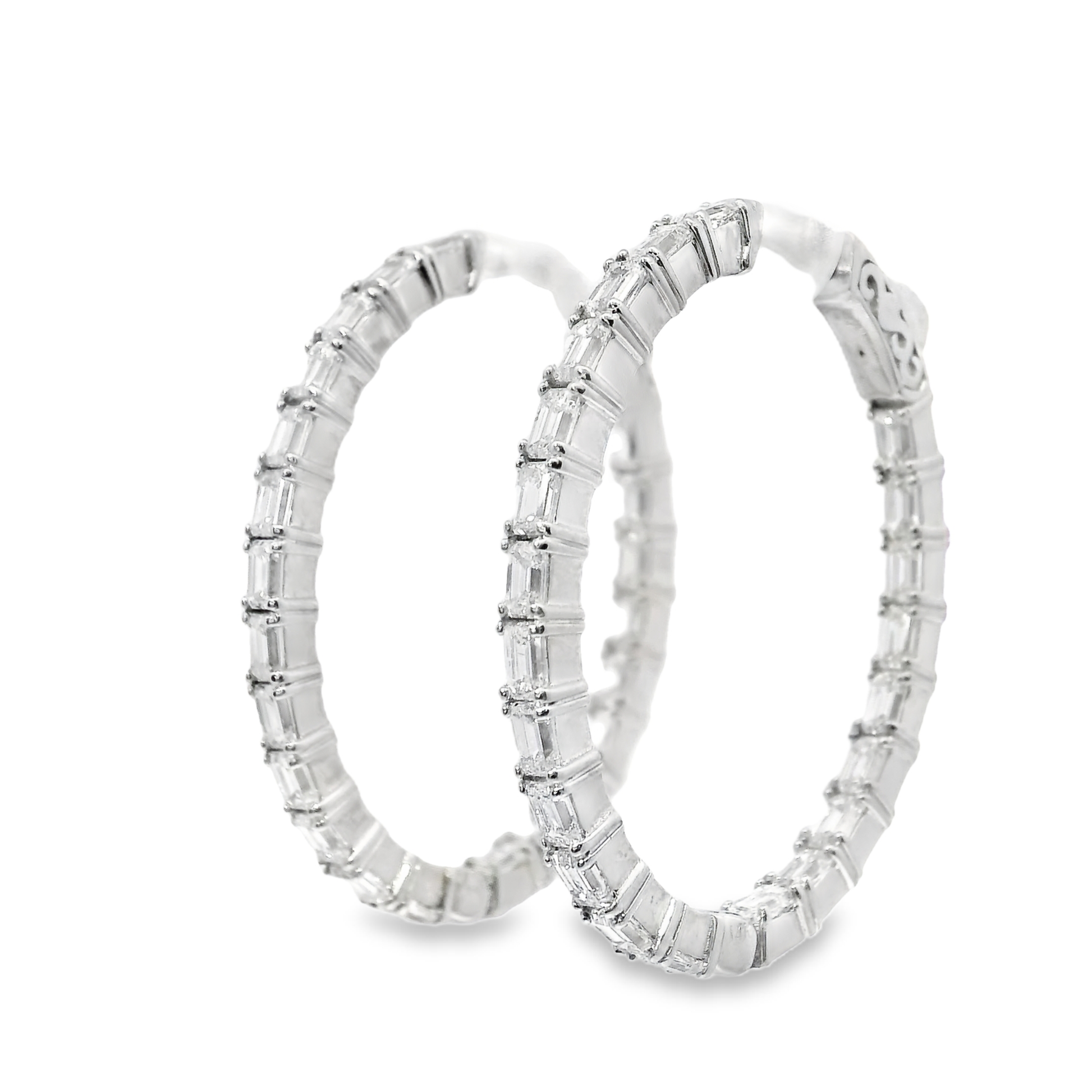 3.79CT Diamond Lab Emerald Cut Hoop Earring 14k White Gold