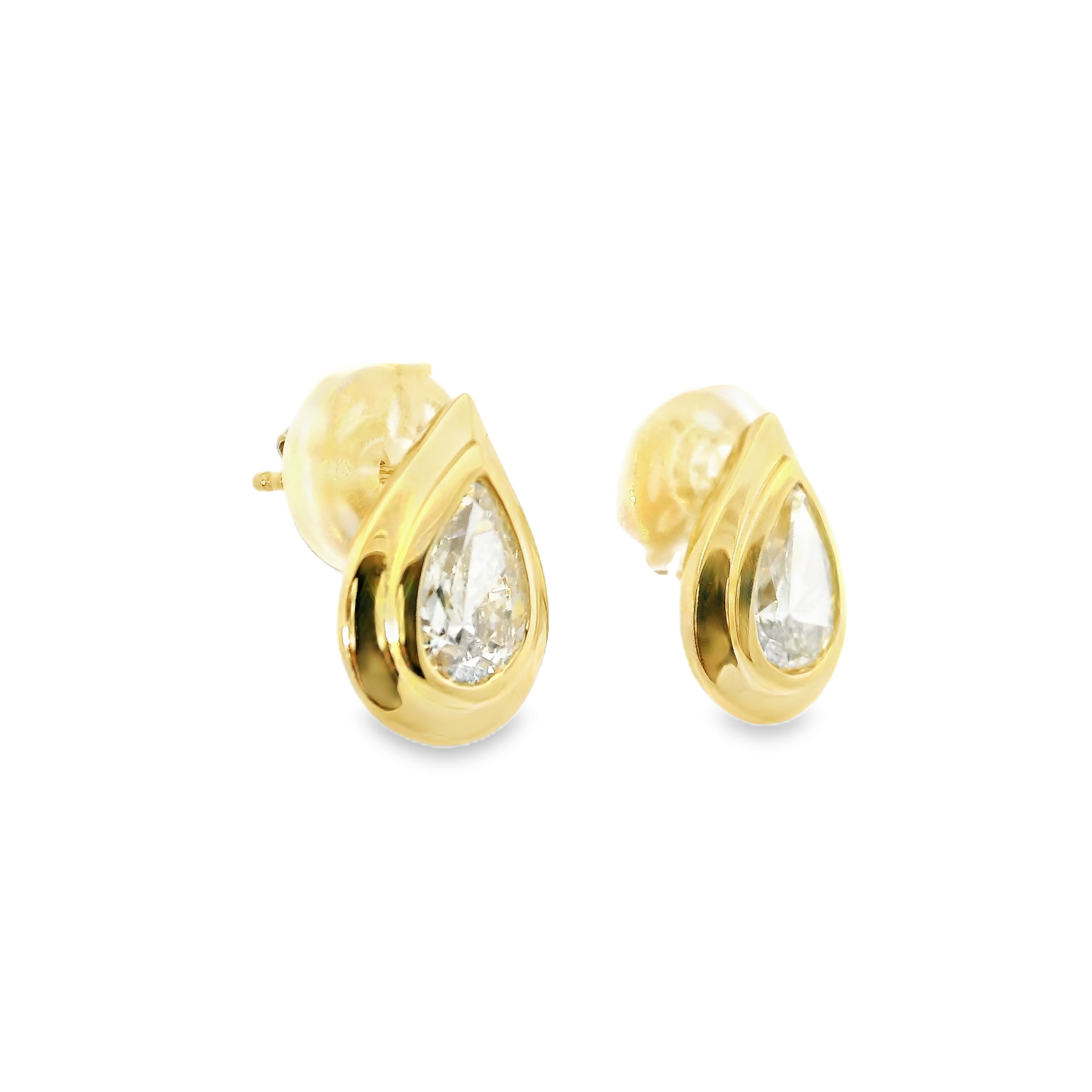 These stunning earrings feature a 1.45CT pear-shaped lab diamond set in 14k yellow gold. Expertly crafted and designed to effortlessly elevate any outfit, these earrings offer the perfect blend of luxury and affordability. The lab diamond ensures a brilliant sparkle and the 14k yellow gold adds a touch of elegance.