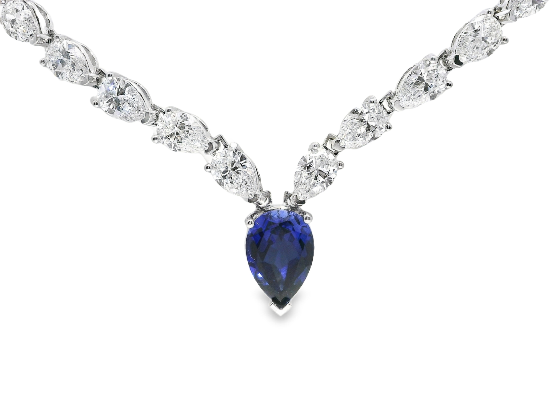 This exquisite piece features a stunning 21.81CT pear-shaped lab diamond complemented by 2.45CT of rich emerald, all set in premium 14k white gold. The precision-cut lab diamond offers exceptional brilliance and clarity while maintaining ethical sourcing standards. The vibrant emerald accents create a sophisticated color contrast against the white gold setting, resulting in a luxurious statement piece that combines modern technology with timeless elegance.