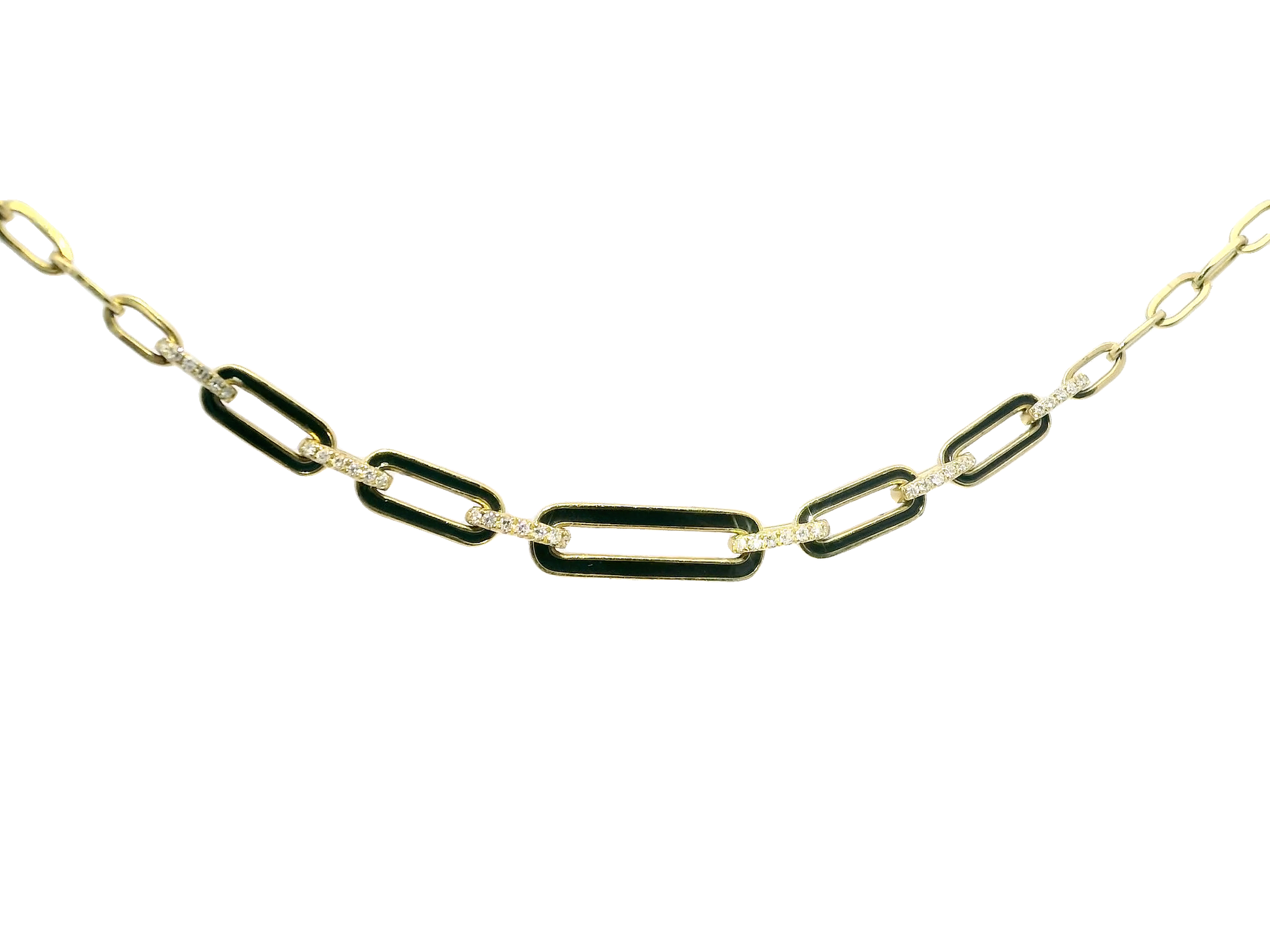 This 14k yellow gold pendant features a 0.17CT diamond surrounded by black enamel. The elegant combination of gold, diamond, and enamel creates a timeless and sophisticated look. Perfect for any occasion, this pendant adds a touch of luxury to any outfit.