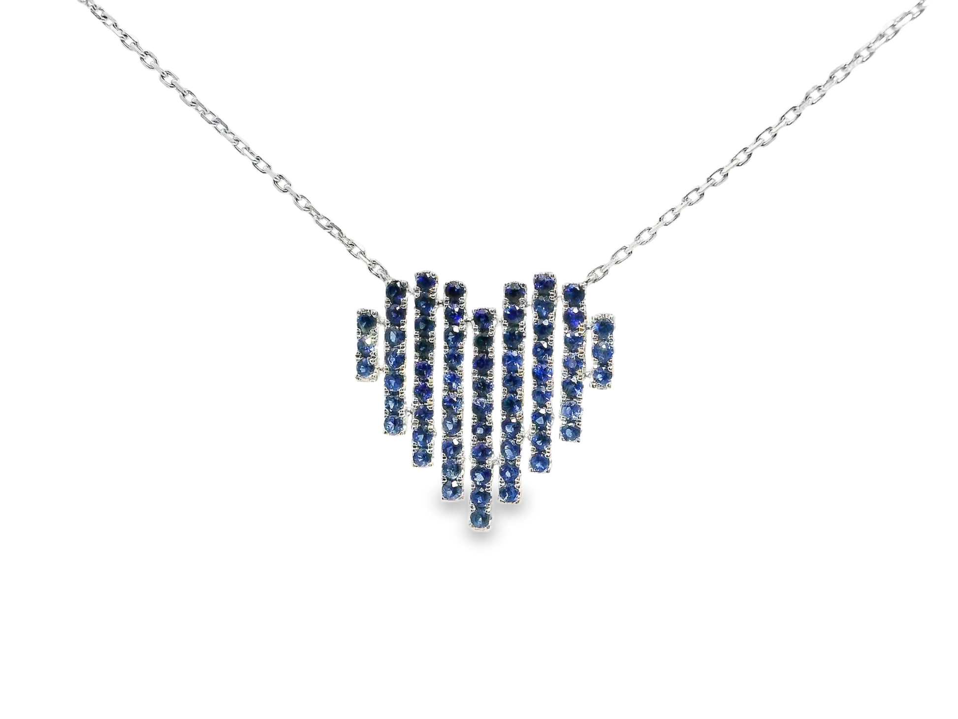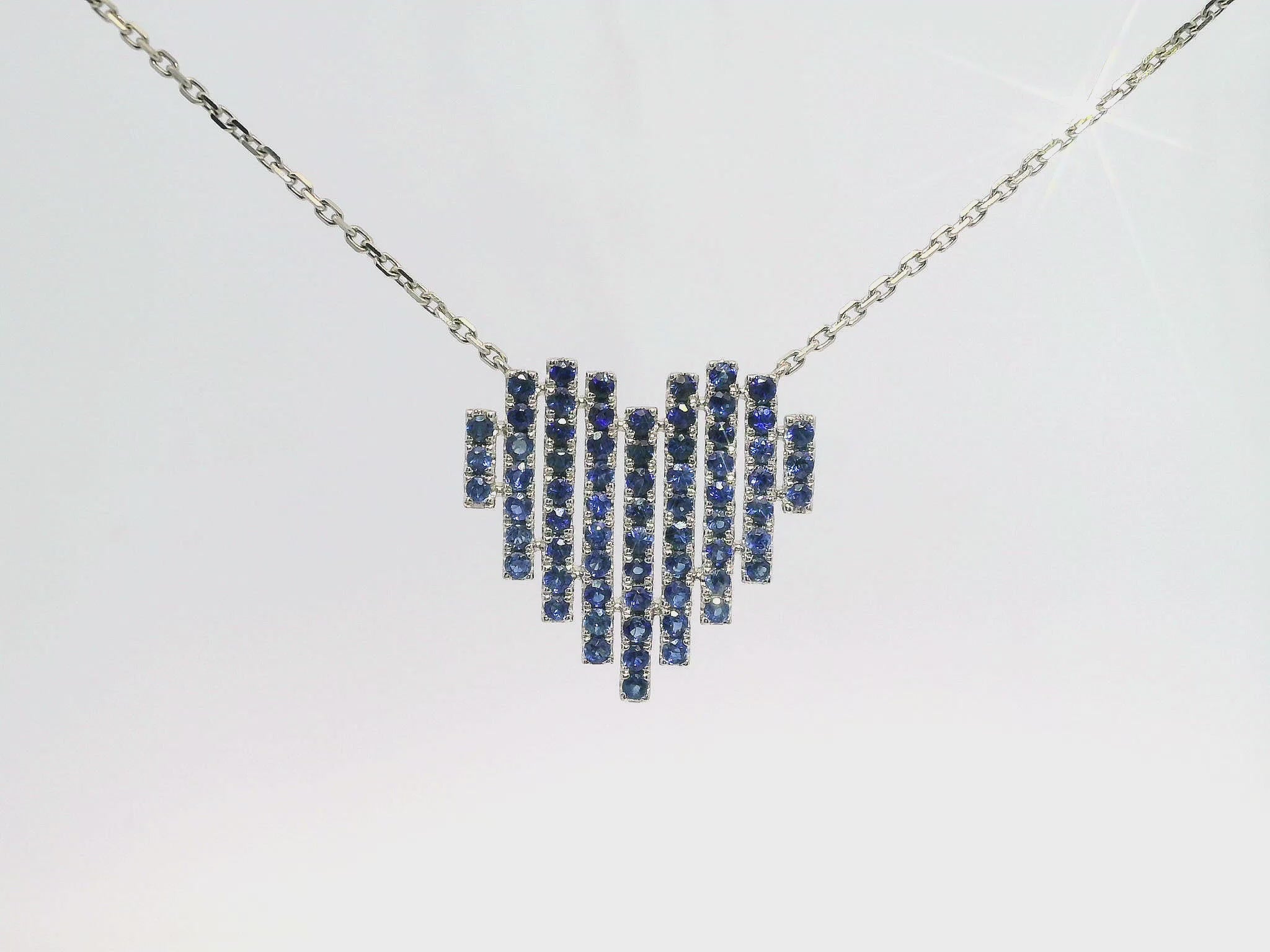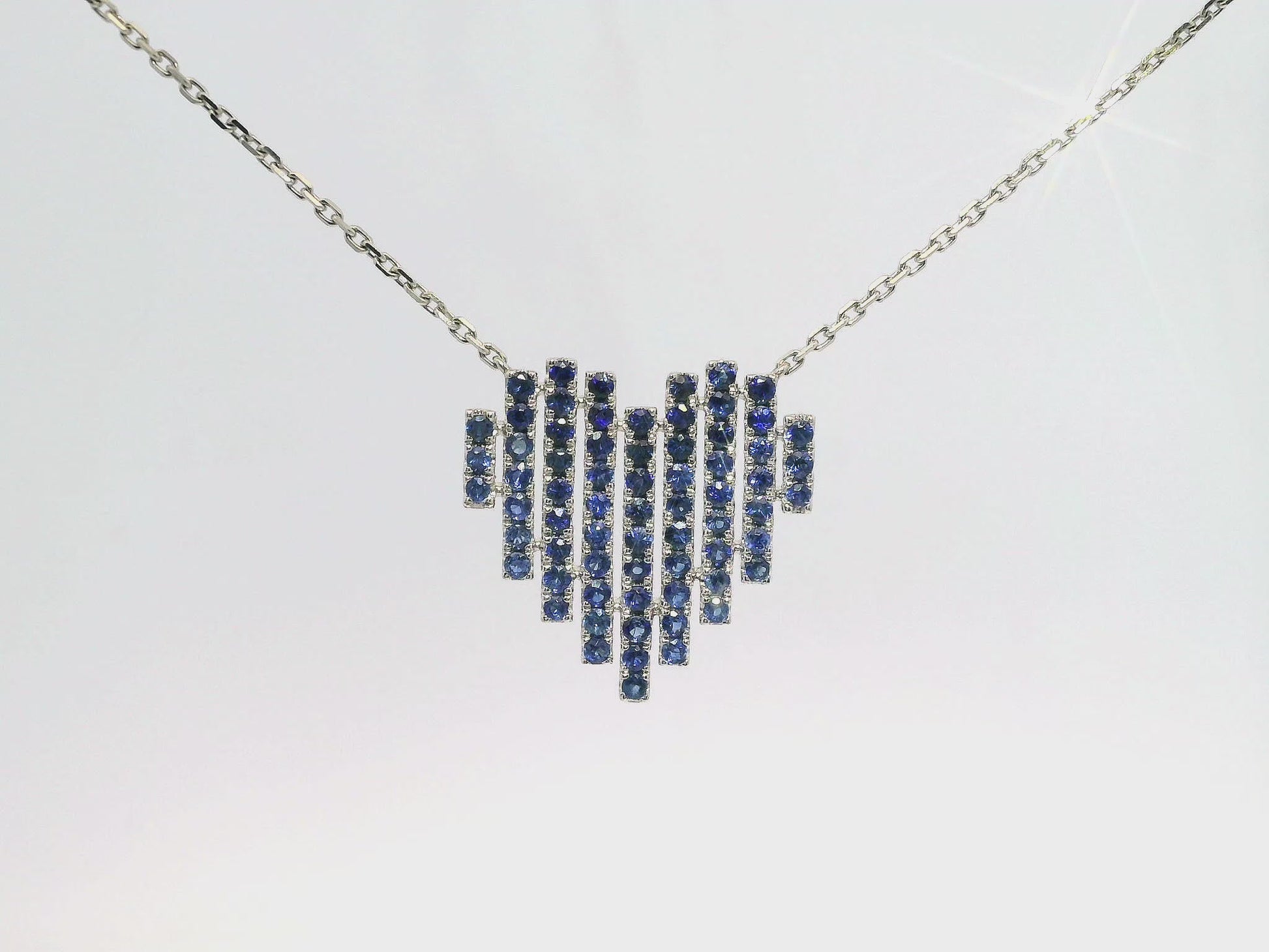 Exquisitely crafted 1.05CT heart pendant featuring mixed blue sapphires set in premium 14k white gold. The varying blue hues create a captivating depth and brilliance, while the heart silhouette offers timeless symbolism. This pendant