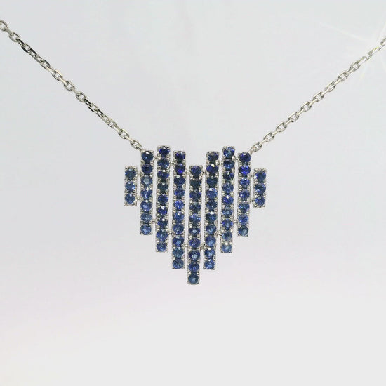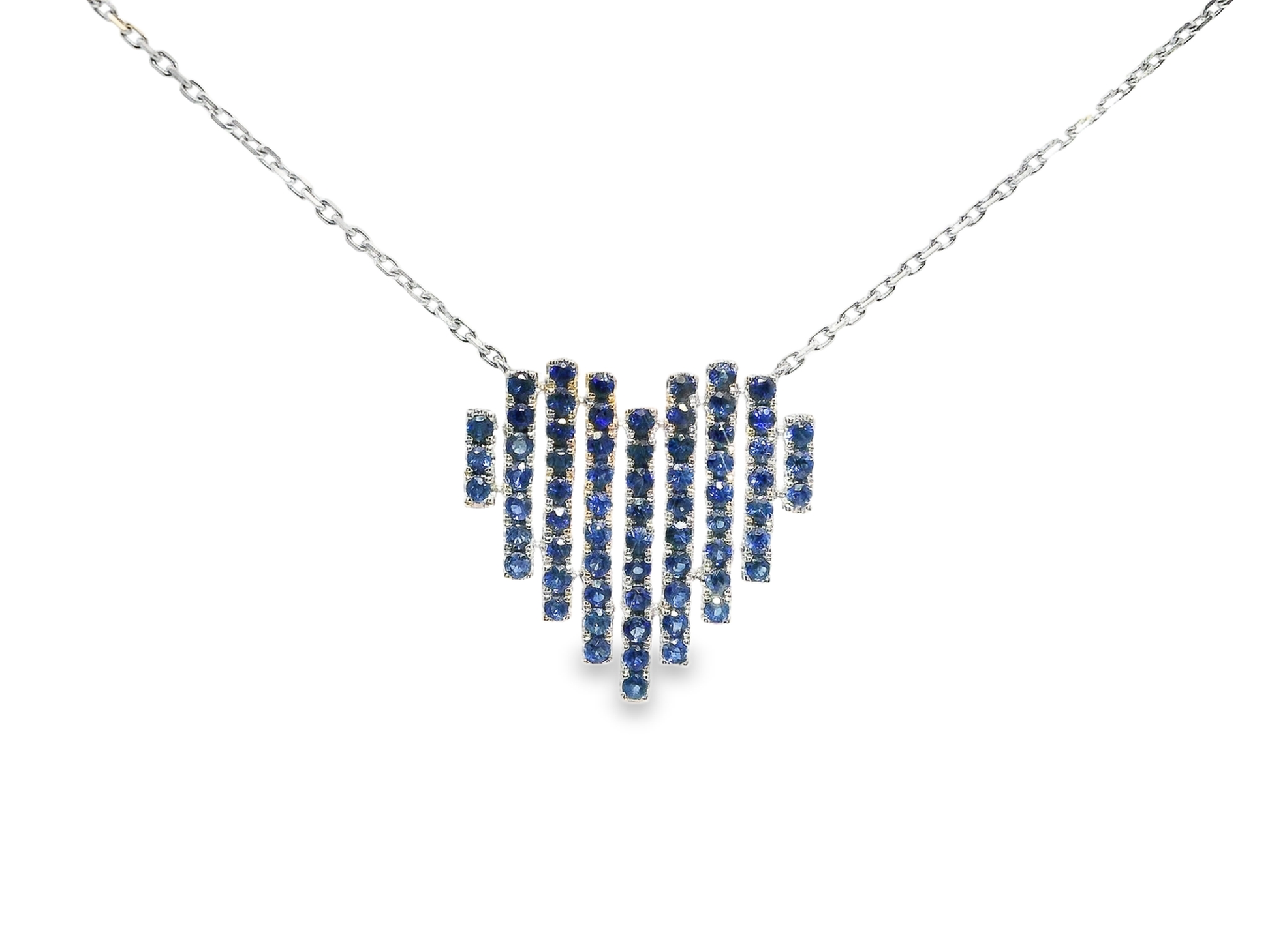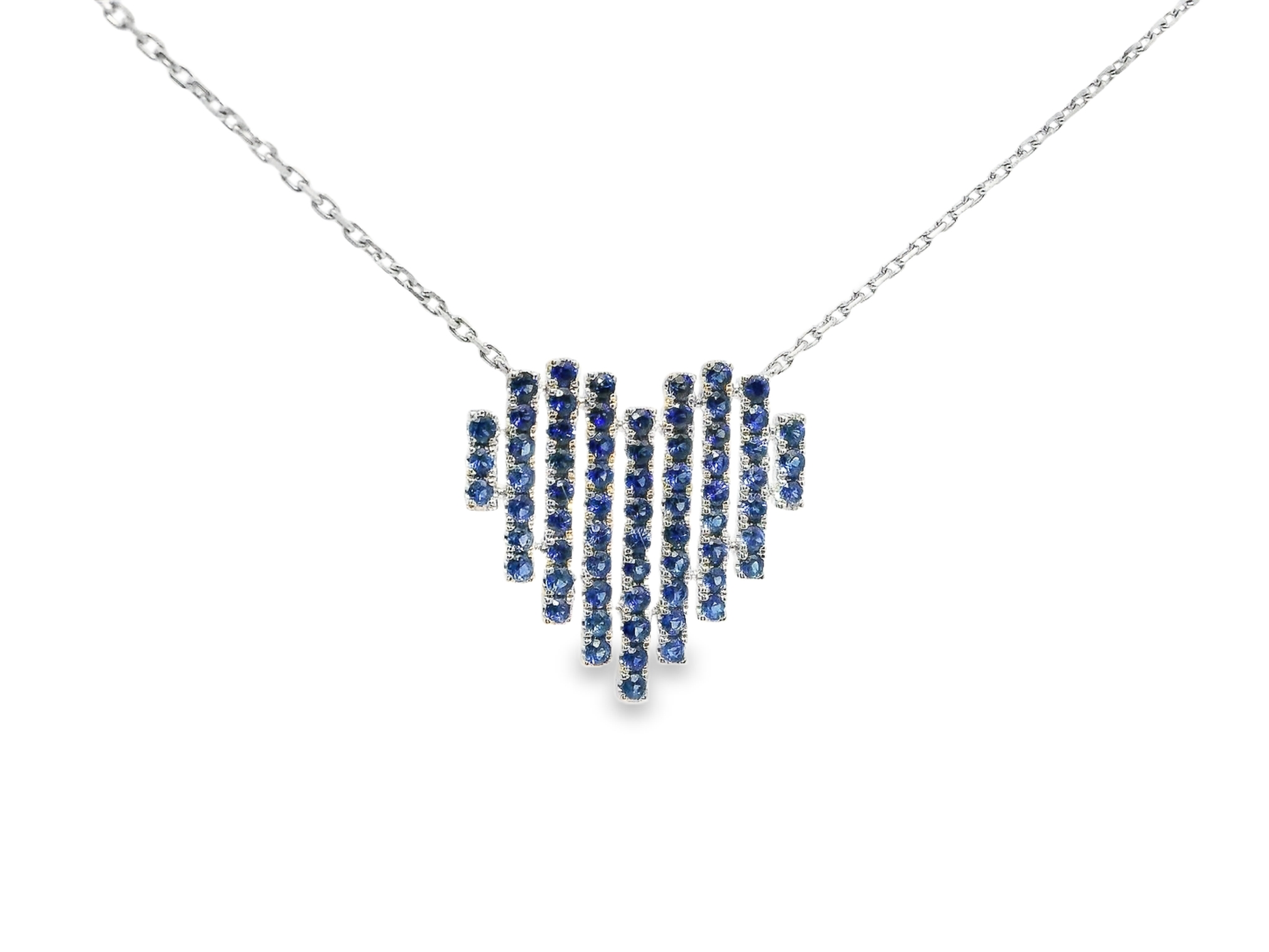 Exquisitely crafted 1.05CT heart pendant featuring mixed blue sapphires set in premium 14k white gold. The varying blue hues create a captivating depth and brilliance, while the heart silhouette offers timeless symbolism. This pendant