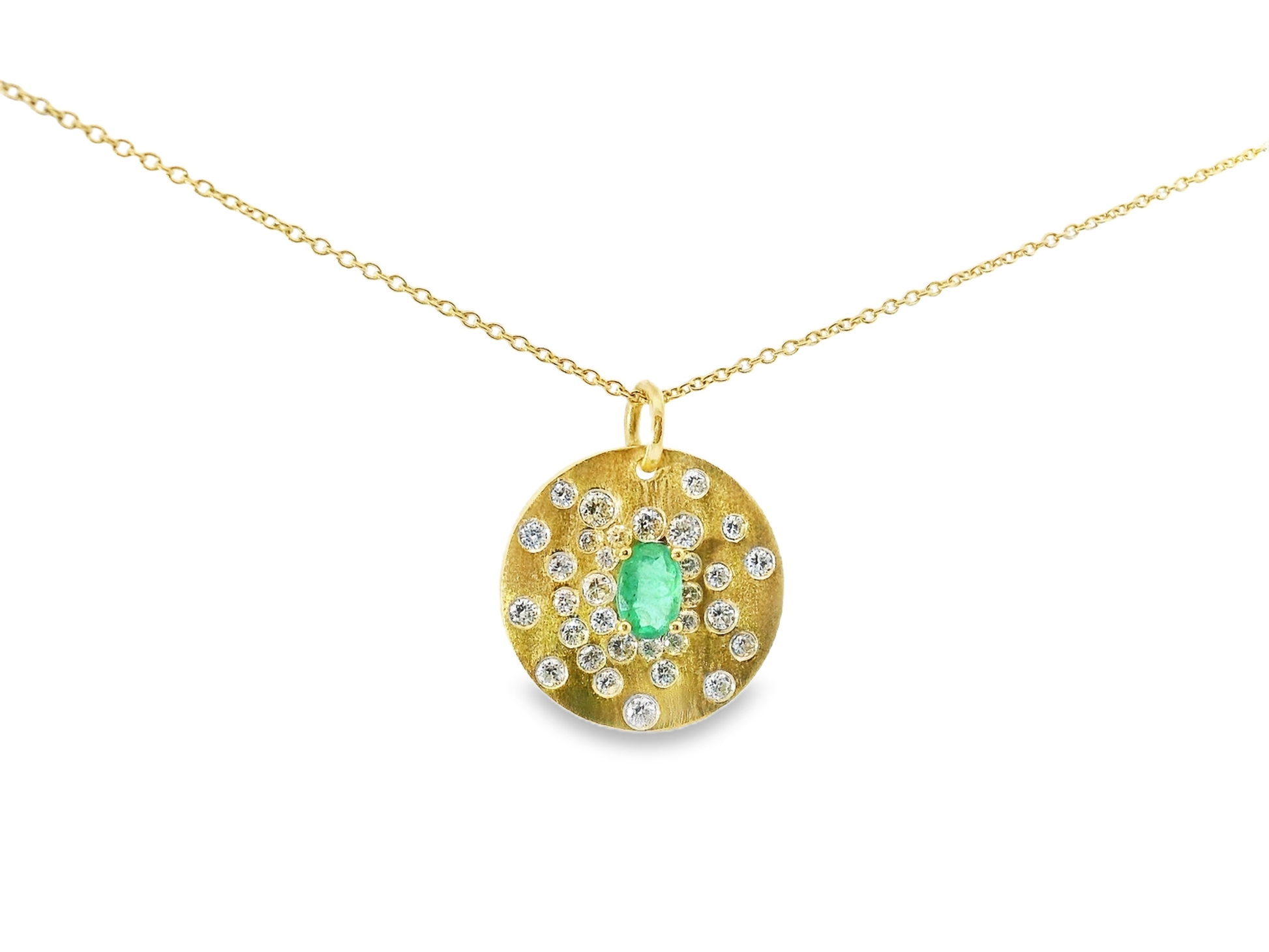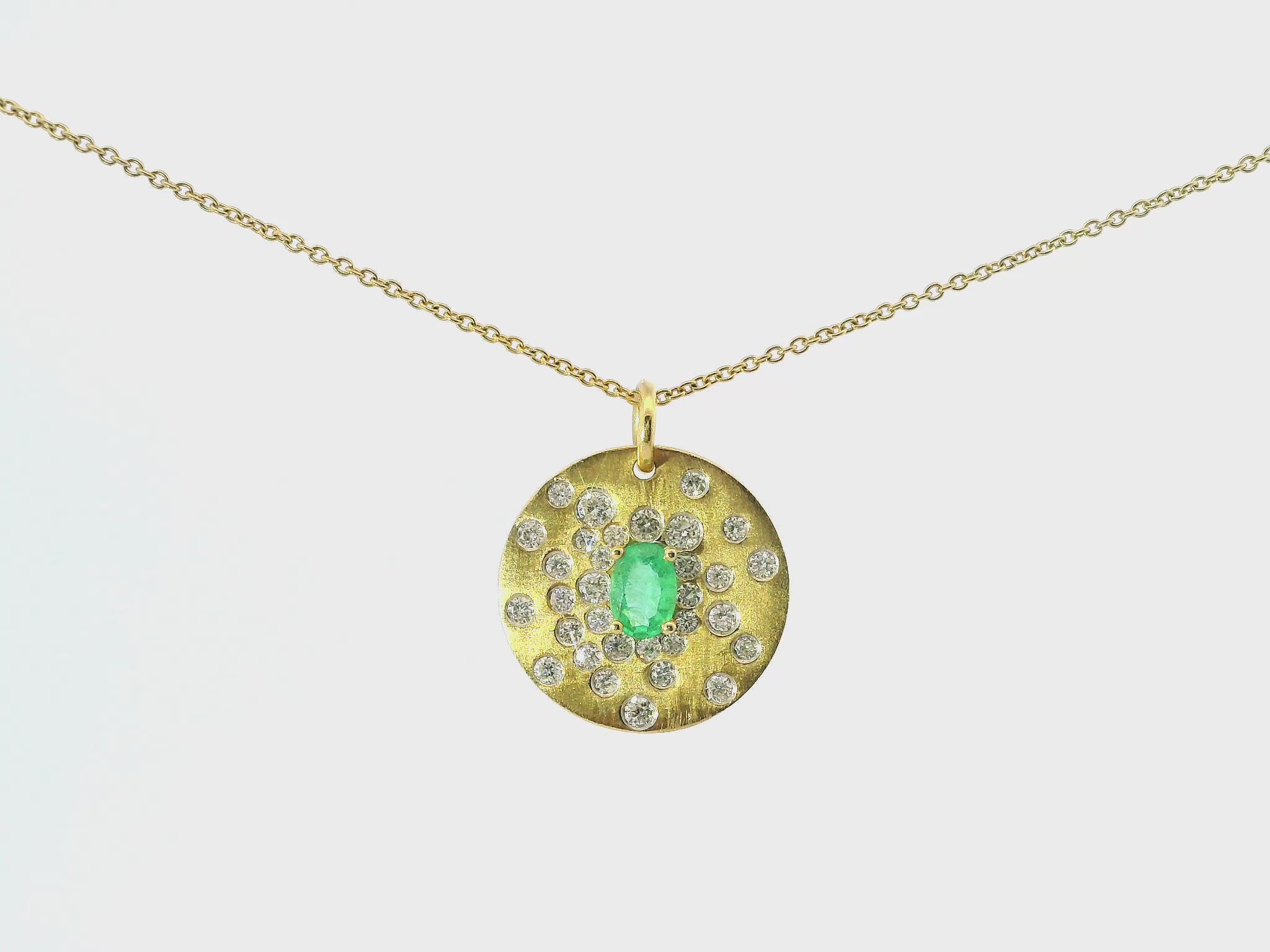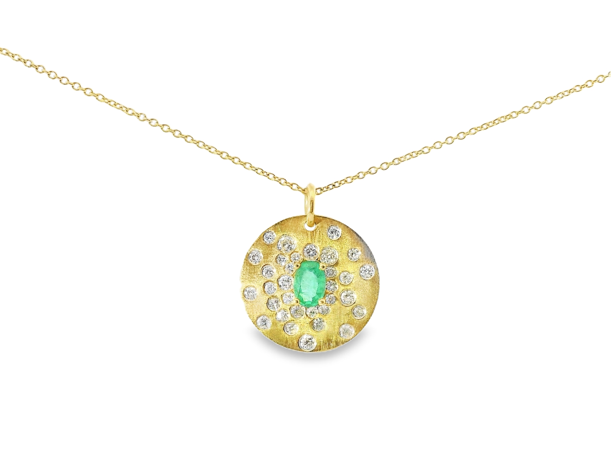 Exquisite 14k yellow gold pendant featuring a brilliant 0.67CT diamond complemented by a vibrant 0.42CT emerald. This sophisticated piece balances the diamond's exceptional clarity with the emerald's rich color, creating a luxurious statement accessory that transitions effortlessly from day to evening wear. The premium craftsmanship ensures lasting beauty and investment value.