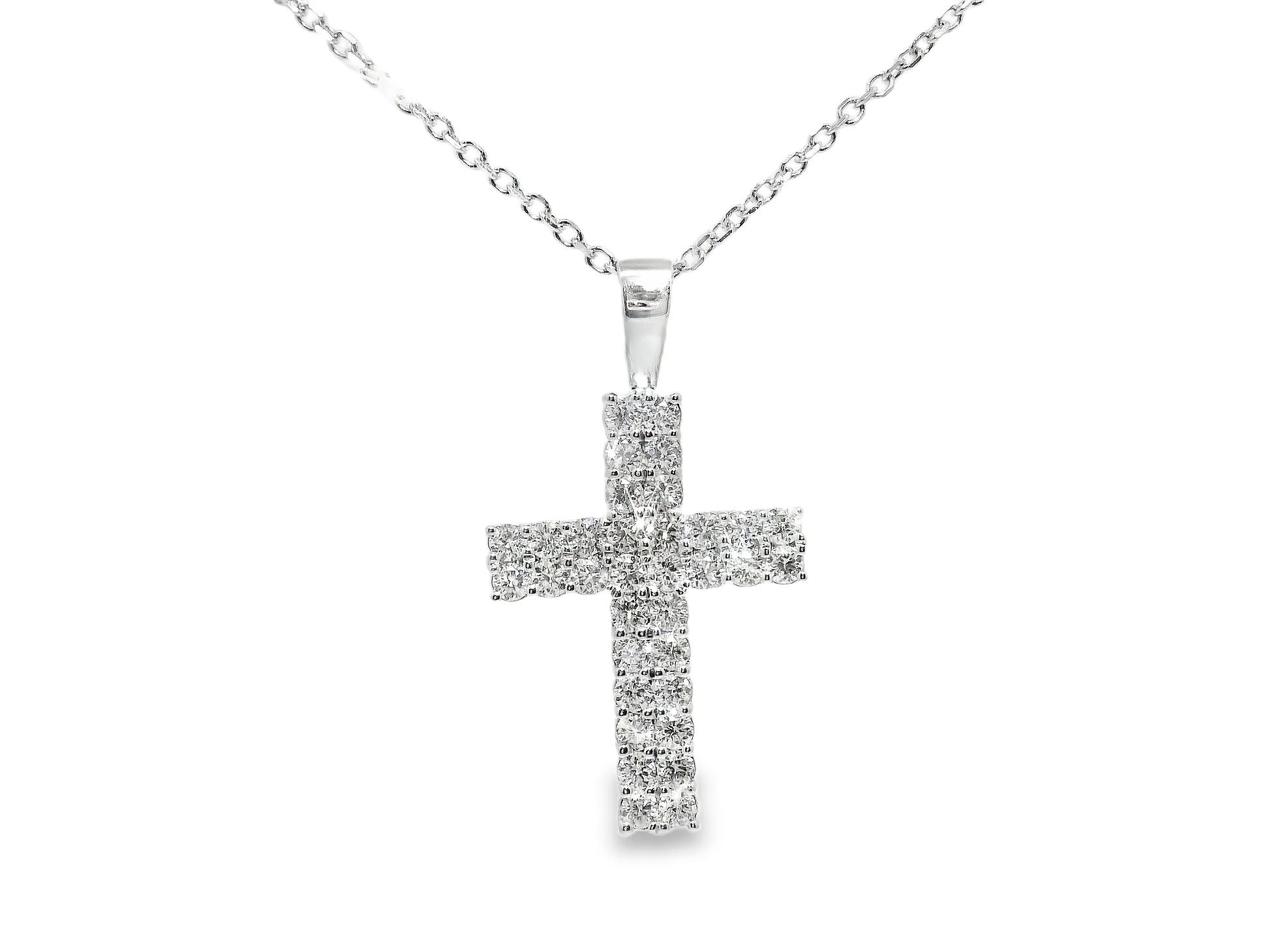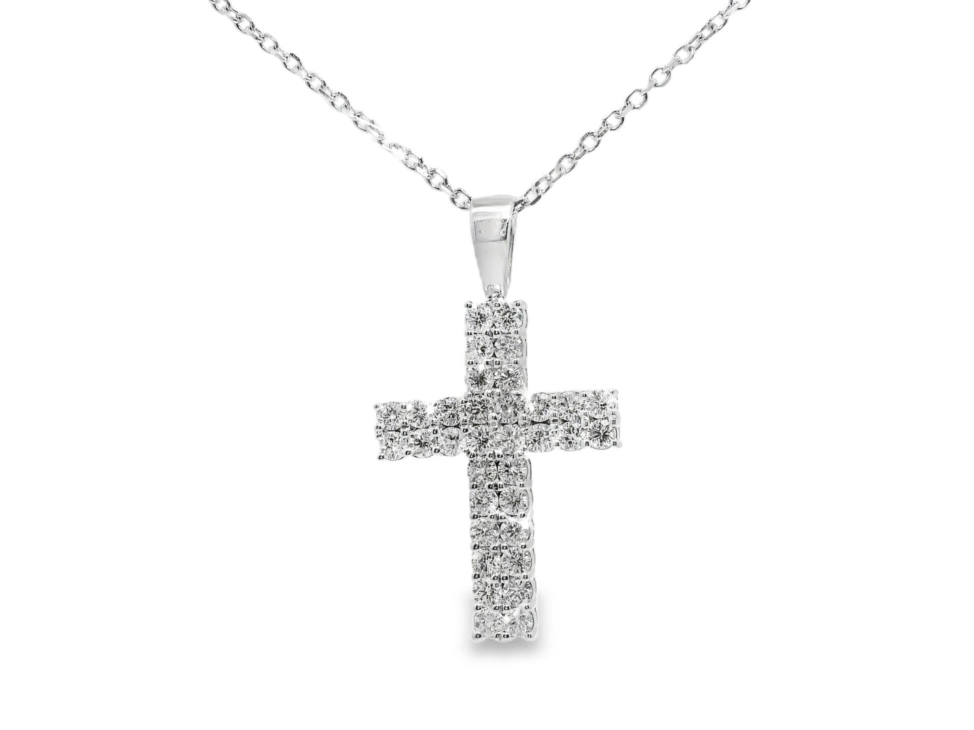 This 1.59CT Diamond Cross Pendant in 14k White Gold is a stunning piece of jewelry that is both elegant and symbolic. With a total carat weight of 1.59, this pendant features numerous diamonds set in a beautiful cross design. Made from 14k white gold, this pendant is not only timeless but also of high quality. A perfect gift for any special occasion.