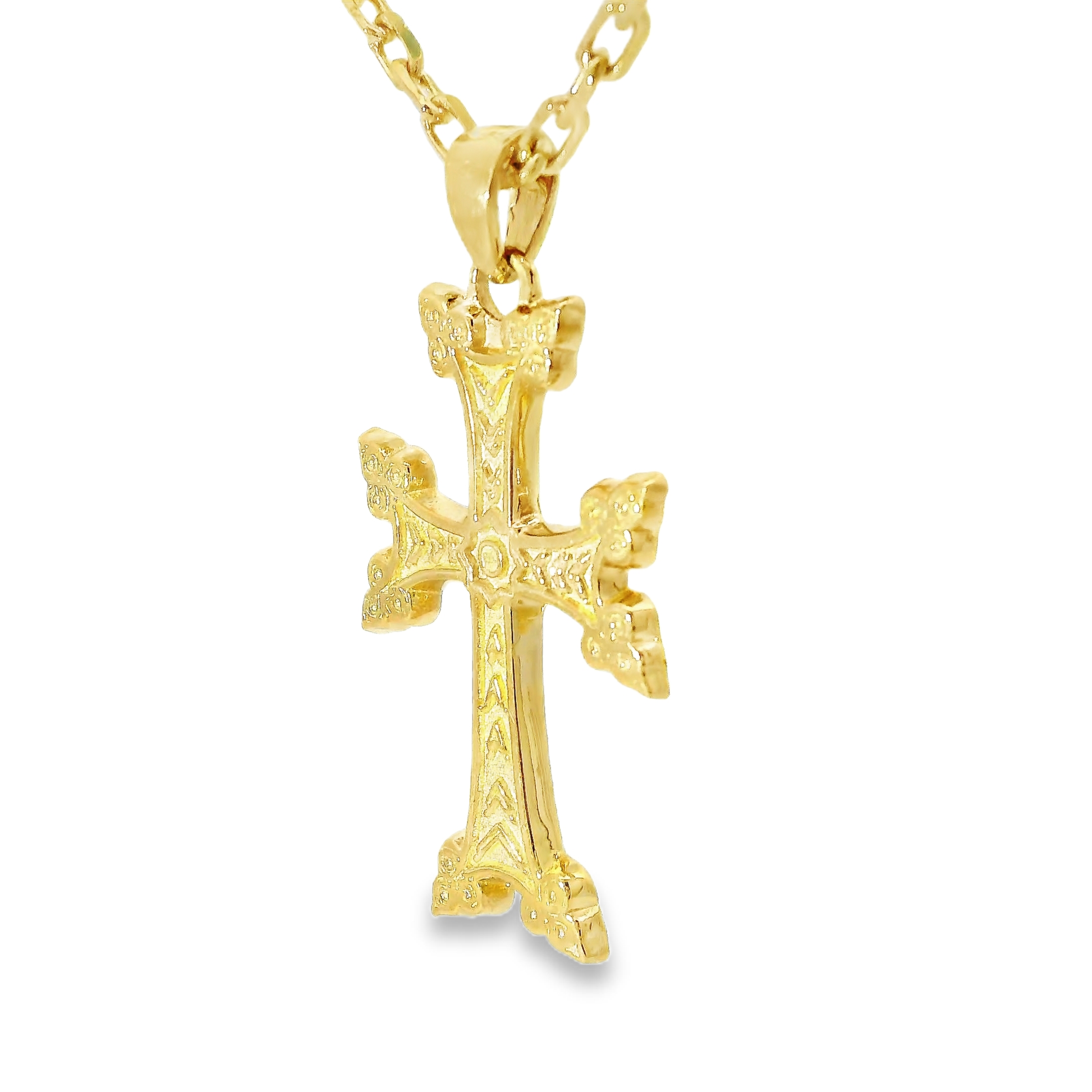 This simple and elegant Plain Diamond Cross Pendant is crafted in 14k Yellow Gold. With its understated design and expert craftsmanship, this pendant is the perfect addition to any jewelry collection. Made with genuine diamonds, it adds a touch of sparkle and sophistication to any outfit.