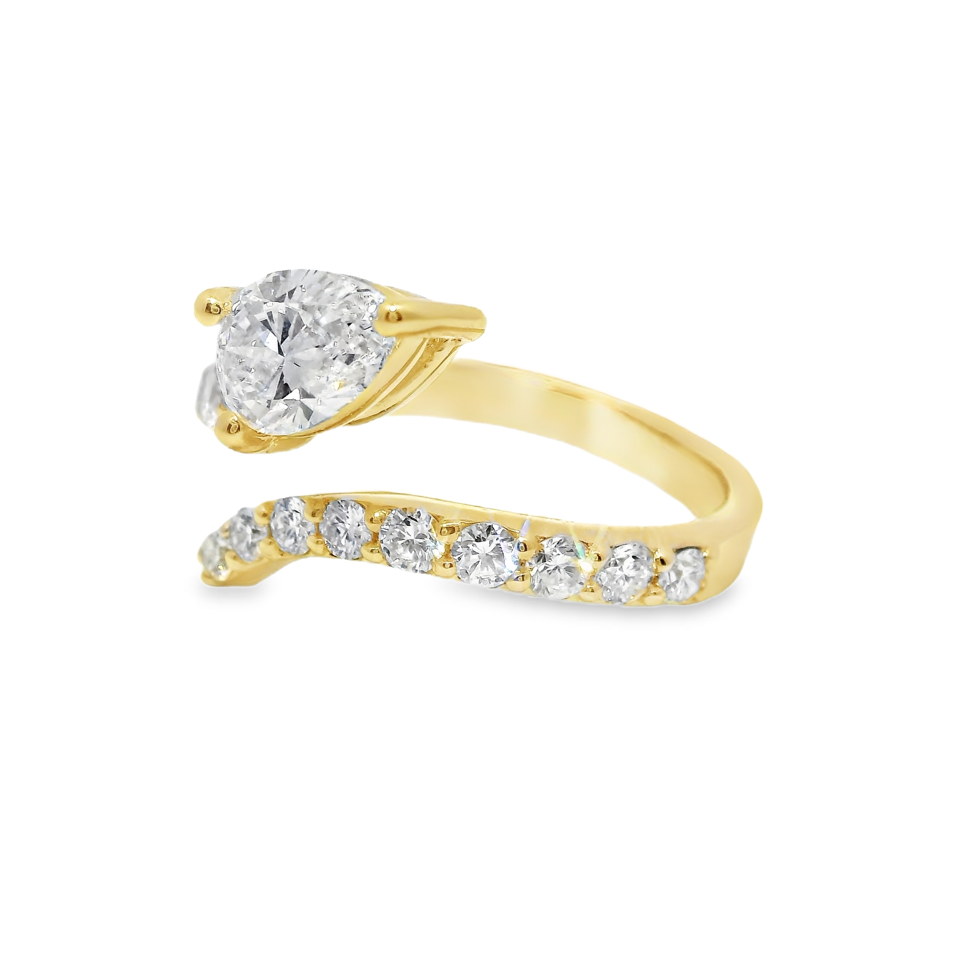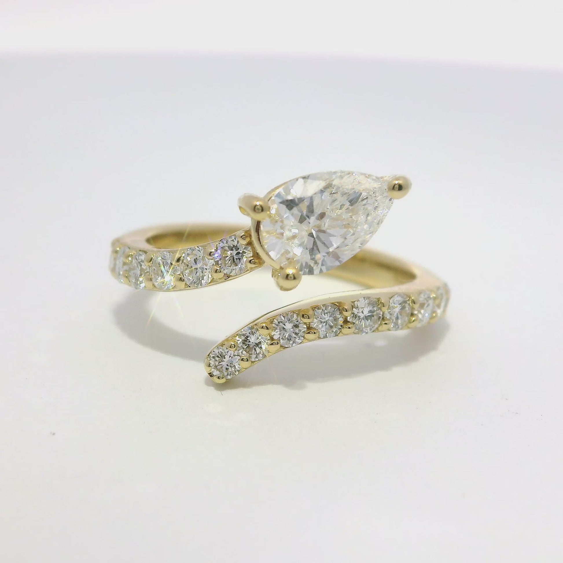 Elevate your jewelry collection with this exquisite piece featuring a 0.59CT lab-grown diamond paired with a stunning 0.74CT lab-created pear-shaped stone. Set in luxurious 14k yellow gold, this design offers exceptional brilliance and ethical sourcing. The precision-cut stones deliver remarkable clarity and fire, making this an investment-quality addition to any sophisticated wardrobe.