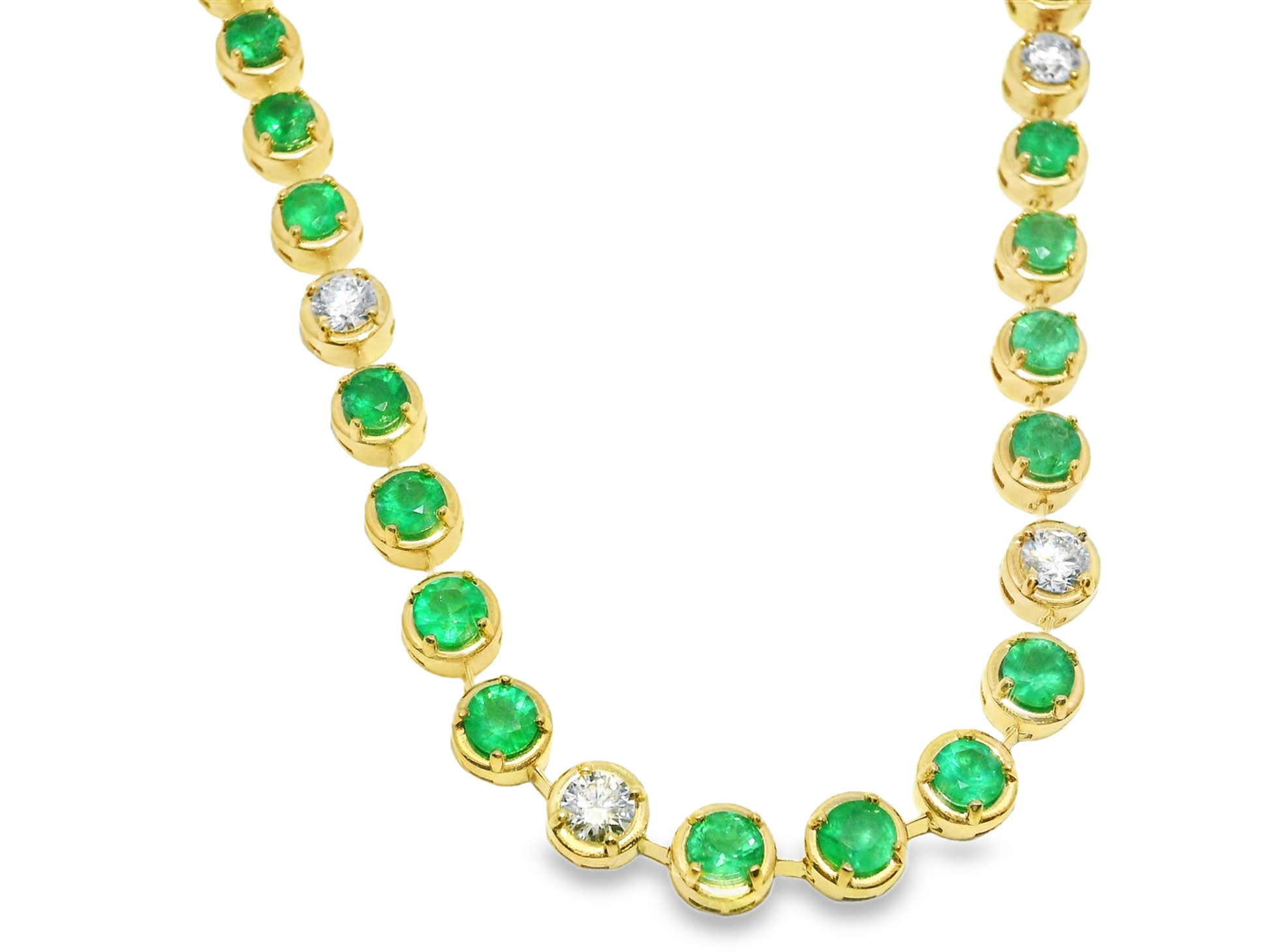 2.63CT Round Lab Diamond 9.65CT Emerald 14K Yellow Gold Necklace