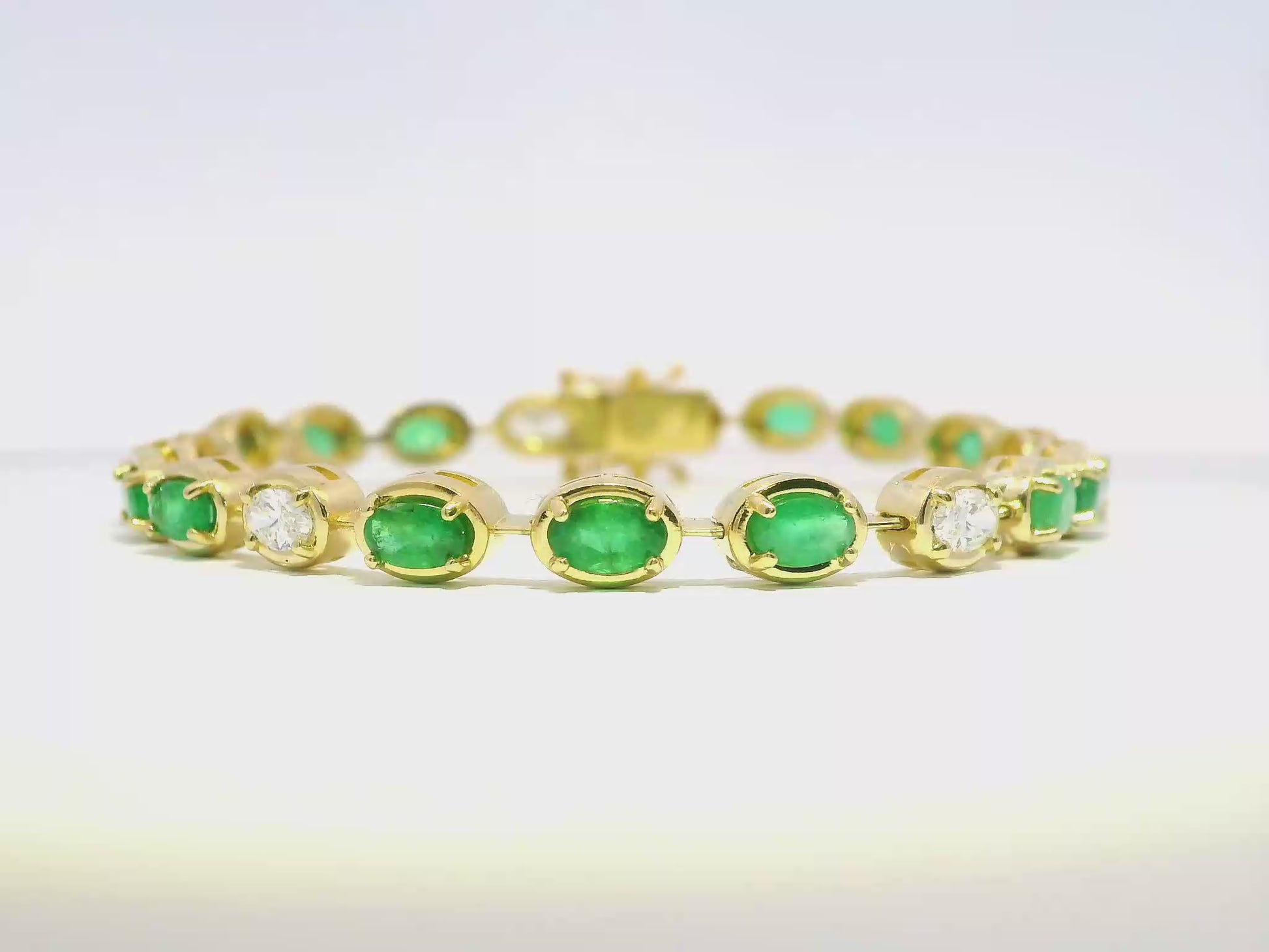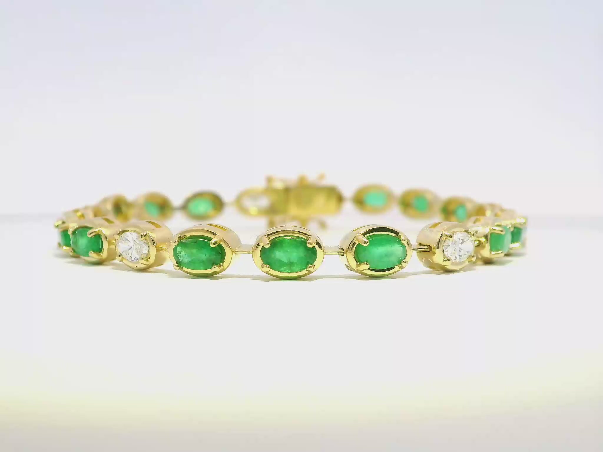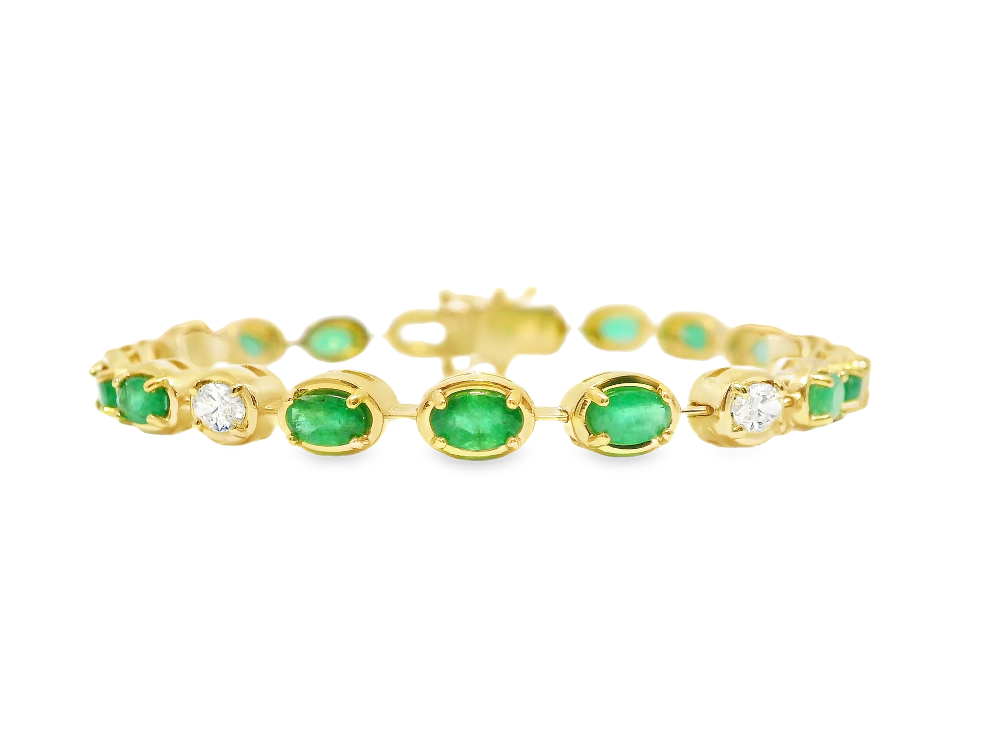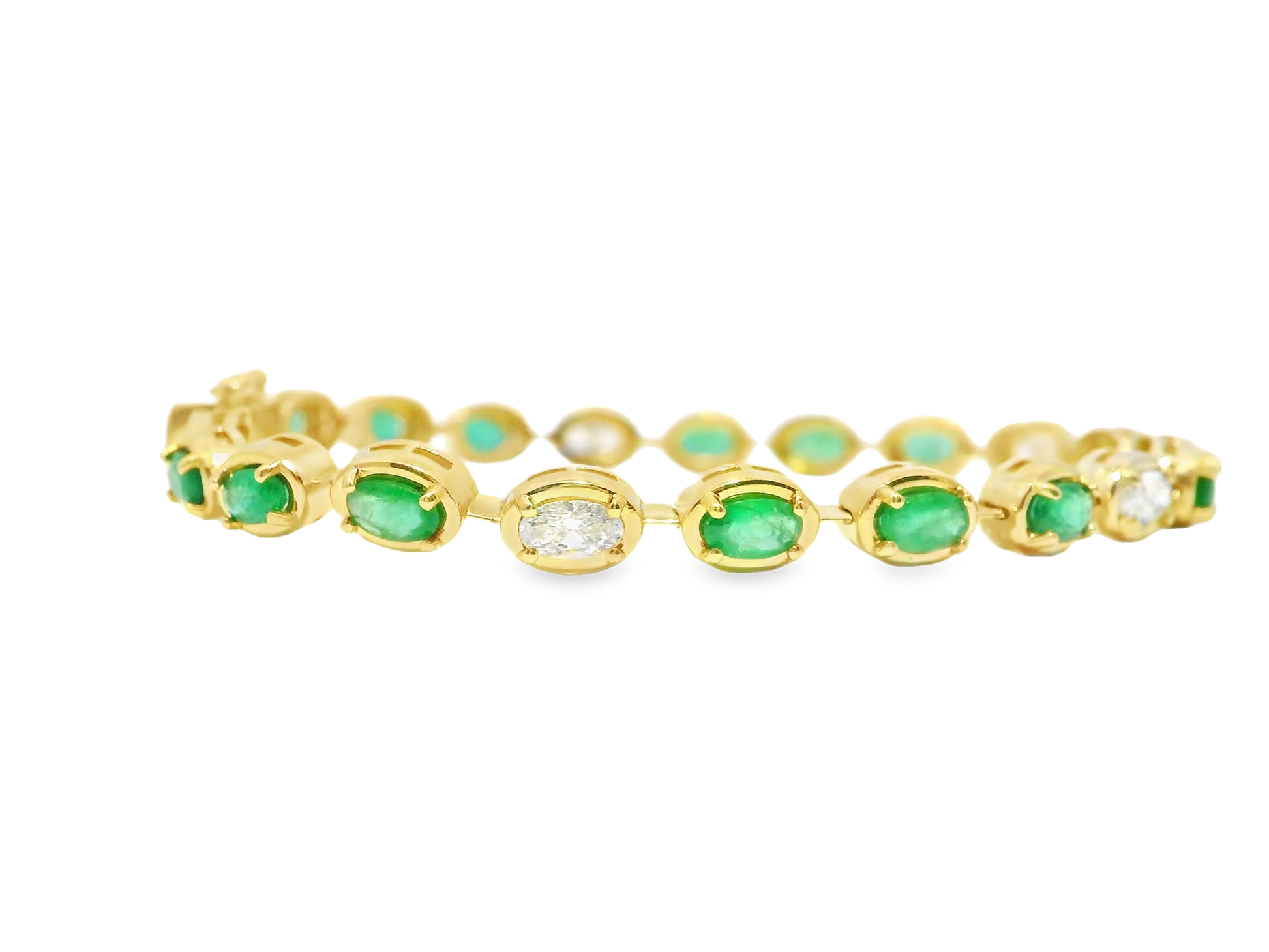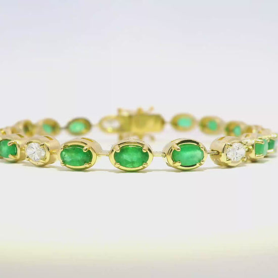 1.20CT Oval Lab Diamond 3.93CT Emerald 14K Yellow Gold Bracelet