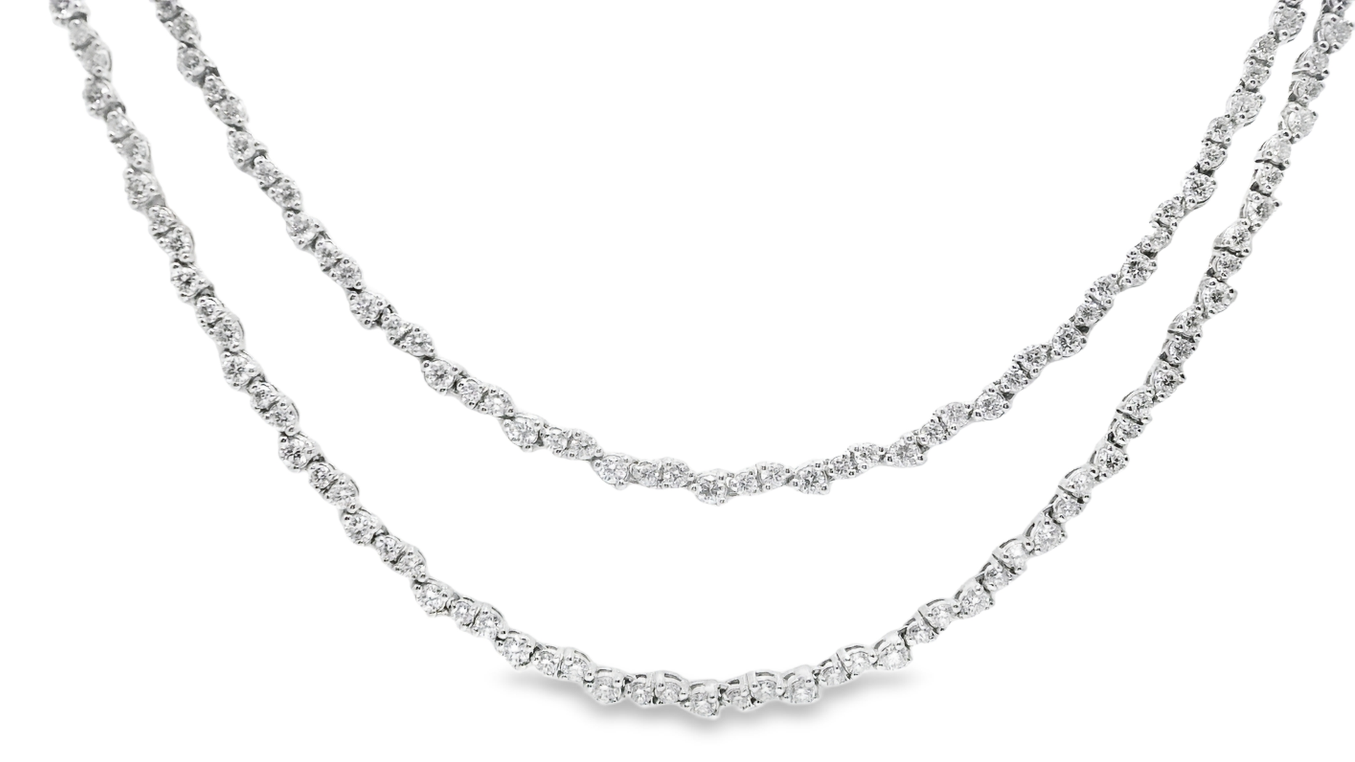 Experience timeless luxury with this 10.46CT Diamond Tennis Necklace, crafted in radiant 14k white gold. Measuring 36 inches, its dazzling diamonds deliver continuous brilliance, perfect for elevating any outfit with sophisticated sparkle. This necklace combines classic design with lasting elegance, making it an unforgettable addition to your jewelry collection.