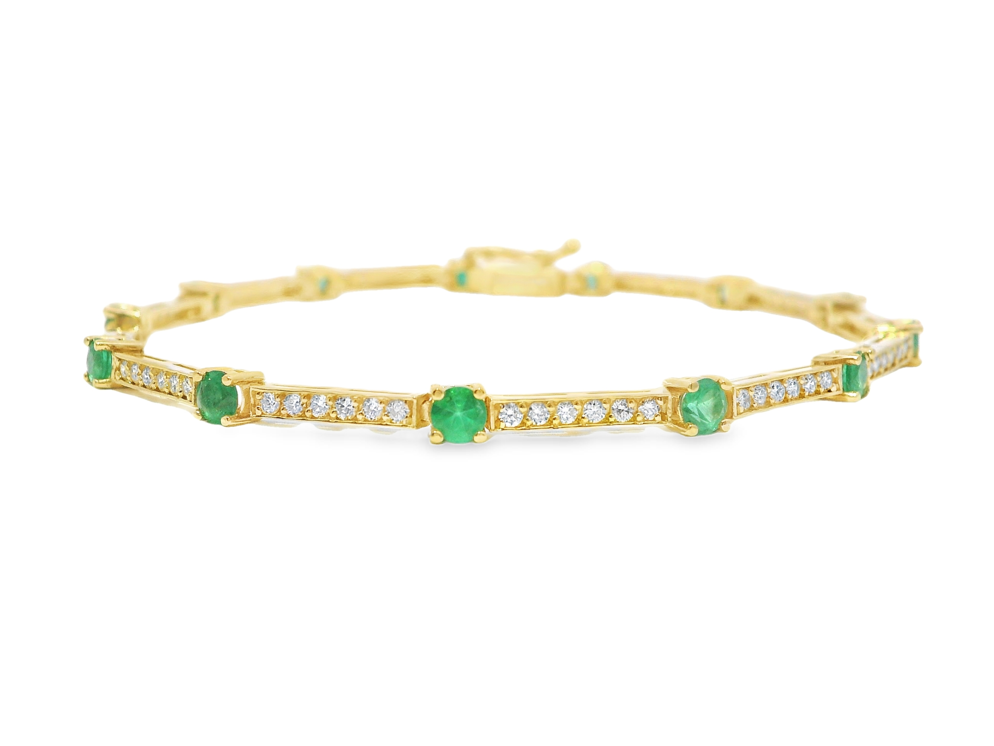 1.46ct Emerald 0.86ct Diamond Bracelet 14k Yellow Gold