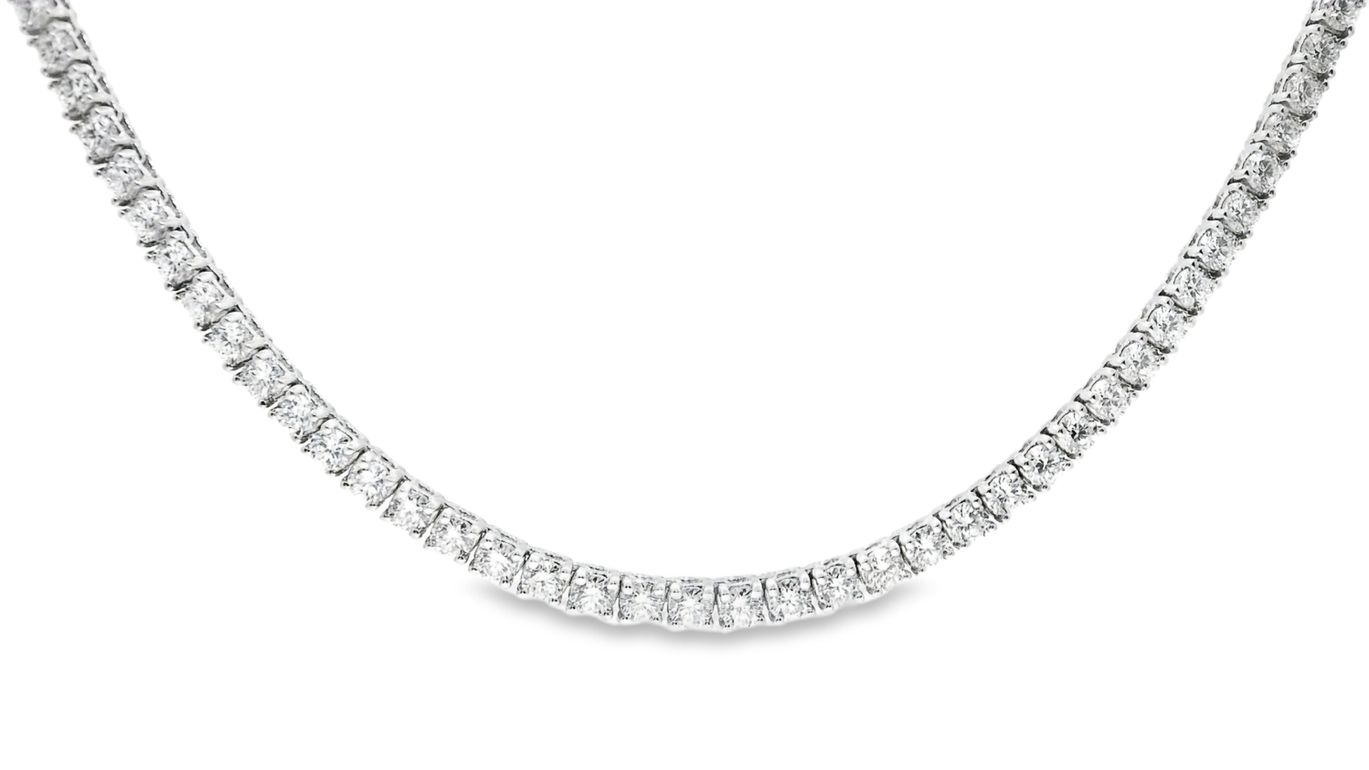 Illuminate your style with this 13.63CT Lab Diamond Tennis Necklace crafted in radiant 14K white gold. Featuring ethically created lab-grown diamonds, it offers brilliant sparkle and lasting shine. This elegant necklace is perfect for adding a refined, timeless accent to any outfit while embracing sustainable luxury.