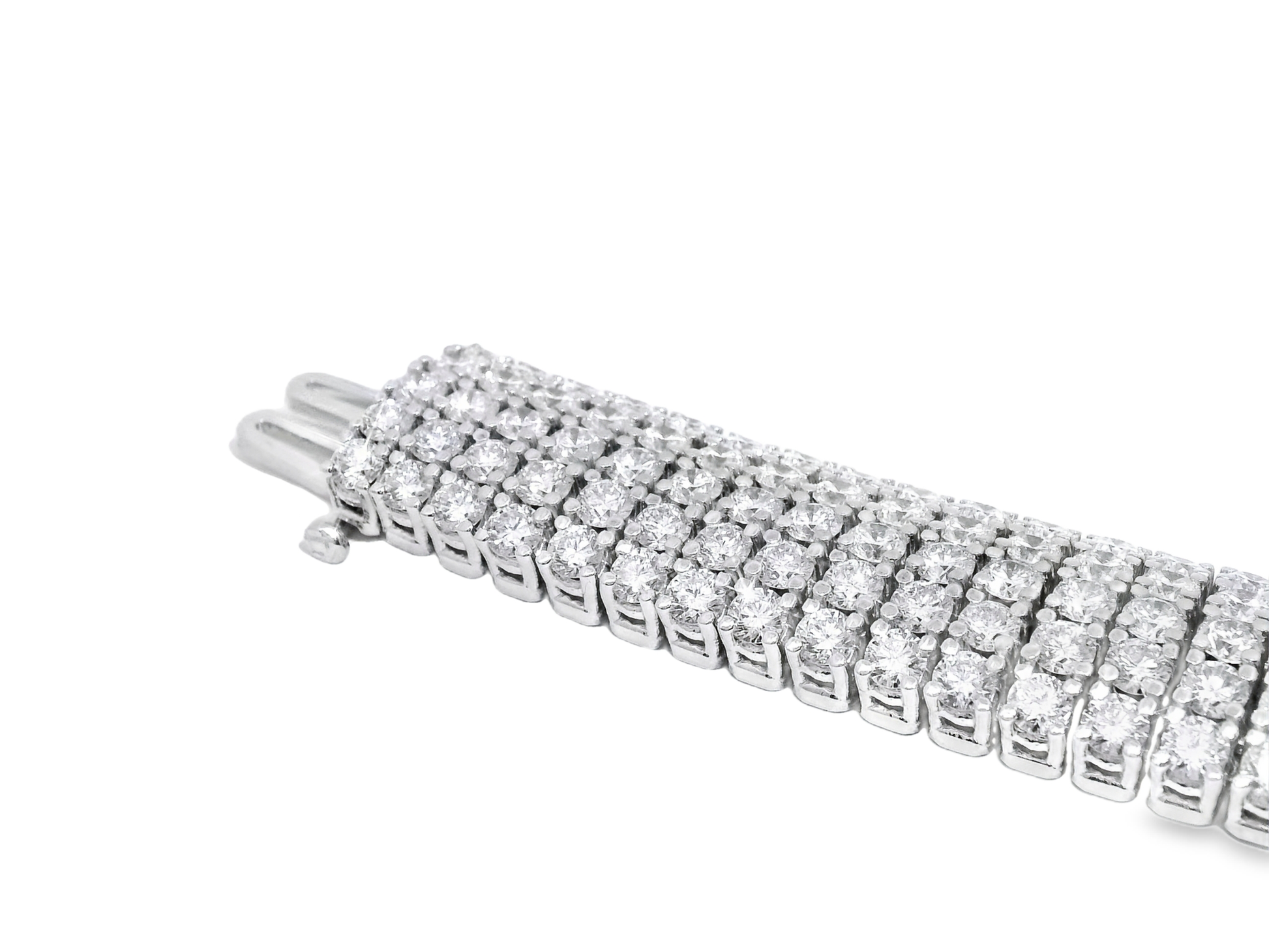 Shine brilliantly with this 31.45CT Diamond Tennis Bracelet crafted in elegant 14K white gold. Featuring meticulously set diamonds that deliver exceptional sparkle, this bracelet effortlessly enhances your style with timeless sophistication. Perfect for adding a luxurious touch to any look, it’s a stunning symbol of grace and refined beauty.