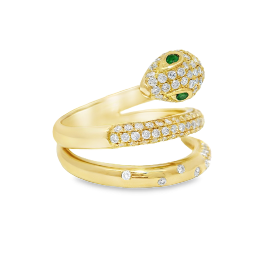 0.90 Diamond and 0.04CT Emerald Serpent Ring 14K Yellow Gold