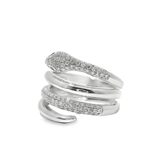0.64CT Round Cut Diamonds .03CT Emerald Serpent Ring 14K Gold