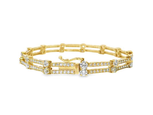 5.44CT Diamond 2 Row Bracelet 14k Yellow Gold