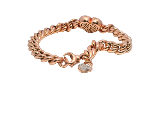 0.87CT Round Cut Diamond Heart Shaped Link Fashion Bracelet 18K Rose Gold