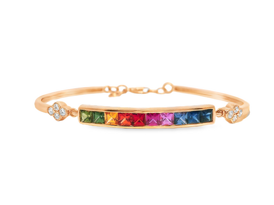 0.27CT Diamond & 2.18CT Mixed Sapphire Bracelet 14k Gold