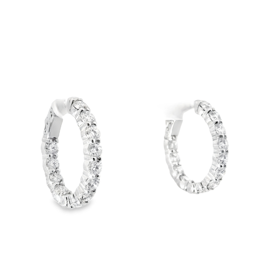 3.02CT Diamond Hoop Earrings 14k White Gold