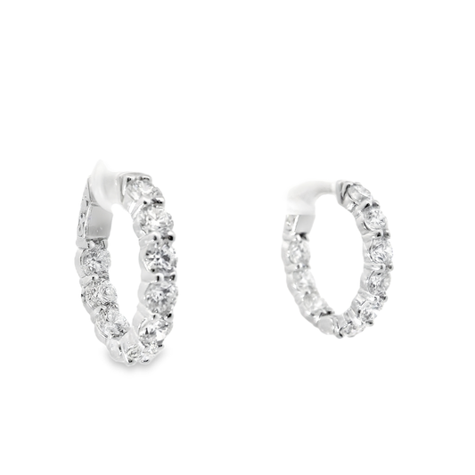 5.25CT Diamond Hoop Earrings 14k White Gold