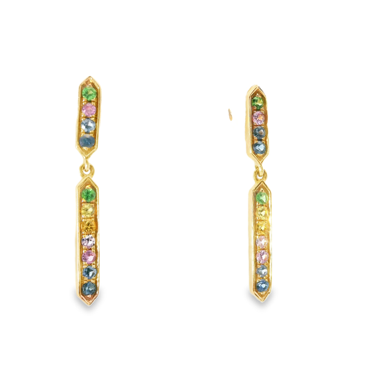 Pink and Blue Sapphire 14k Yellow Gold Earring