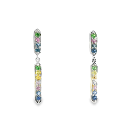 0.35CT Mixed Sapphire 14k White Gold Earring