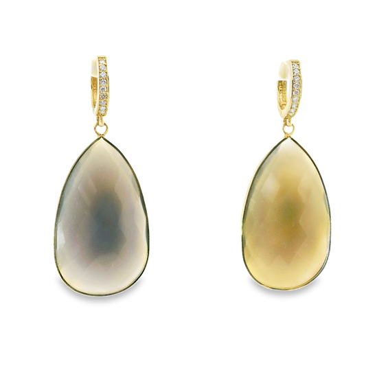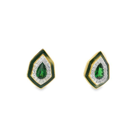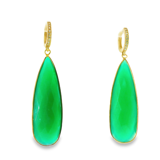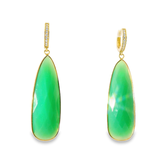 0.15Ct Diamond with Green Calcedony 14k Yellow Gold Earring