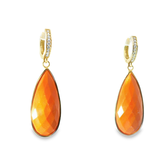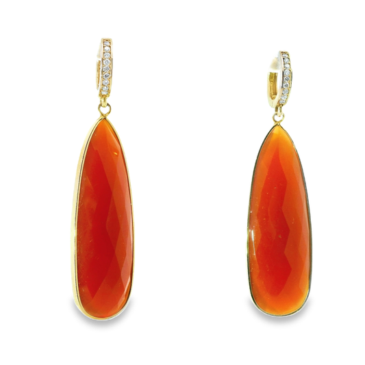0.15CT Diamond with Orange Calcedony 14k Yellow Gold Earring
