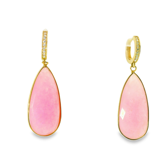 0.15CT Diamond with Pink Calcedony 14k Yellow Gold Earring