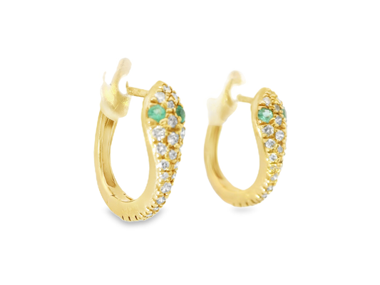 0.33CT Diamond 0.08CT Emerald 18k Yellow Gold Earring