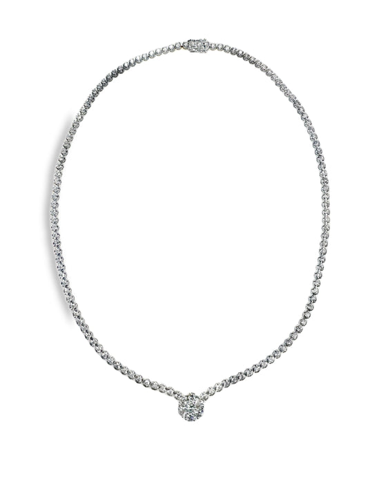 5.73CT Diamond Center Flower 14k White Gold Tennis Necklace